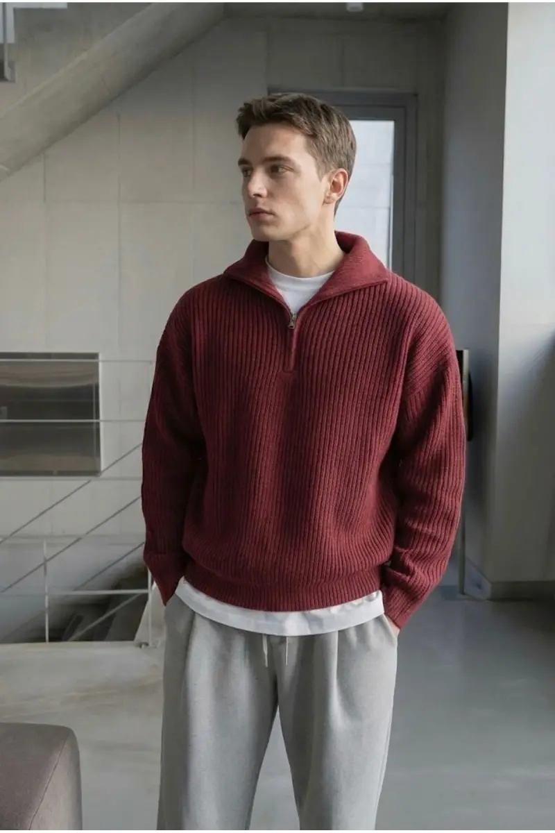 Bu ürün COOL TARZ tarafından gönderilecektir.Kampanya fiyatından satılmak üzere 50 adetten fazla stok sunulmuştur.Bir ürün, birden fazla satıcı tarafından satılabilir. Birden fazla satıcı tarafından satışa sunulan ürünlerin satıcıları ürün için belirledikleri fiyata, satıcı puanlarına, teslimat statülerine, ürünlerdeki promosyonlara, kargonun bedava olup olmamasına ve ürünlerin hızlı teslimat ile teslim edilip edilememesine, ürünlerin stok ve kategorileri bilgilerine göre sıralanmaktadır.Bu üründen en fazla 10 adet sipariş verilebilir. 10 adedin üzerindeki siparişleri Trendyol iptal etme hakkını saklı tutar. Belirlenen bu limit kurumsal siparişlerde geçerli olmayıp, kurumsal siparişler için farklı limitler belirlenebilmektedir.15 gün içinde ücretsiz iade. Detaylı bilgi için [page="return_conditions"]tıklayın .- Uzun kollu tasarımı ile mevsim geçişlerinde ideal bir konfor sunar.- Akrilik materyali sayesinde yumuşak dokunuşu ve sıcak tutma özelliğiyle öne çıkar.- Tek parça halinde sunulan bu kazak, minimalist gardıroplar için mükemmel bir seçimdir.- Fermuarlı yaka detayı ile modern ve şık bir görünüm kazandırır.- Çizgili deseniyle klasik çizgileri modern bir yorumla buluşturur.- Bordo rengiyle dikkat çekici ve asil bir stil oluşturur.- Regular boy kesimi ile rahat hareket etme olanağı sağlar.- Cepsiz tasarımı sayesinde temiz ve sade bir siluet sunar.- Örgü dokuma tipi, dayanıklılığı artırarak uzun süreli kullanım vaat eder.- Ek özellik içermeyen sade yapısıyla zamansız bir parça olarak gardırobunuzda yerini alır.- Çok kalın yapısı soğuk havalarda ekstra ısı izolasyonu sağlar.- Oversize kalıbı rahatlık ve şıklığı bir arada sunarak trend bir görünüm kazandırır.- Yarım pat fermuar kapama şekli kolay giyilip
