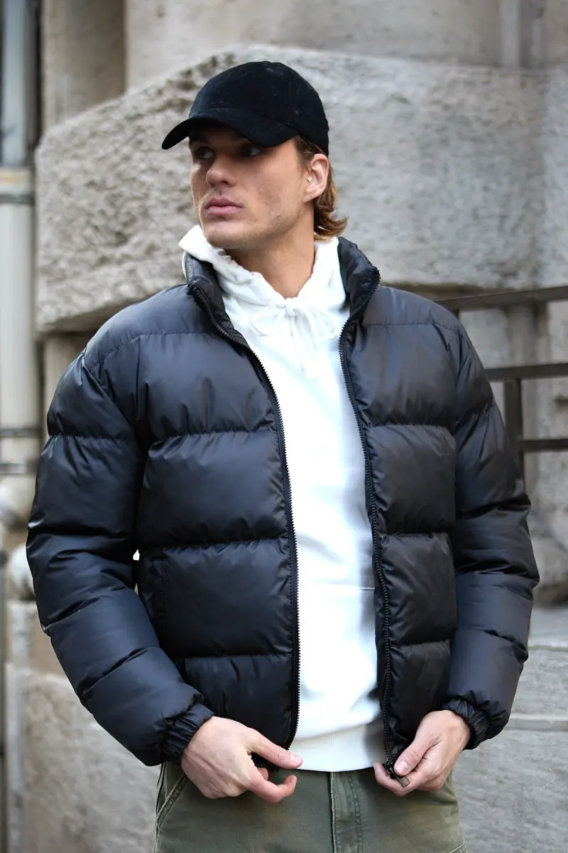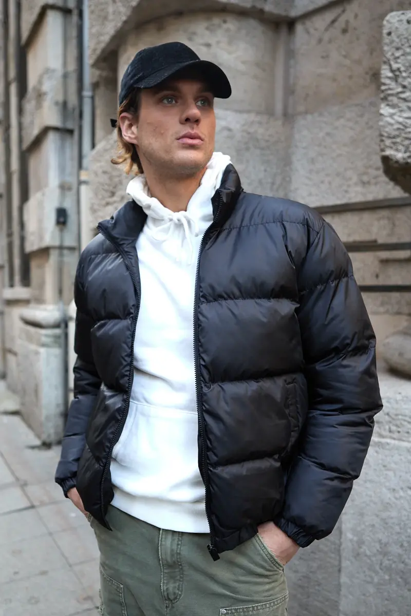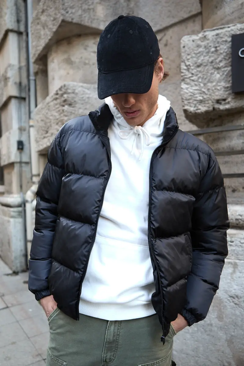 Erkek Oversize Şişme Mont Siyah Rüzgar Geçirmez-Siyah