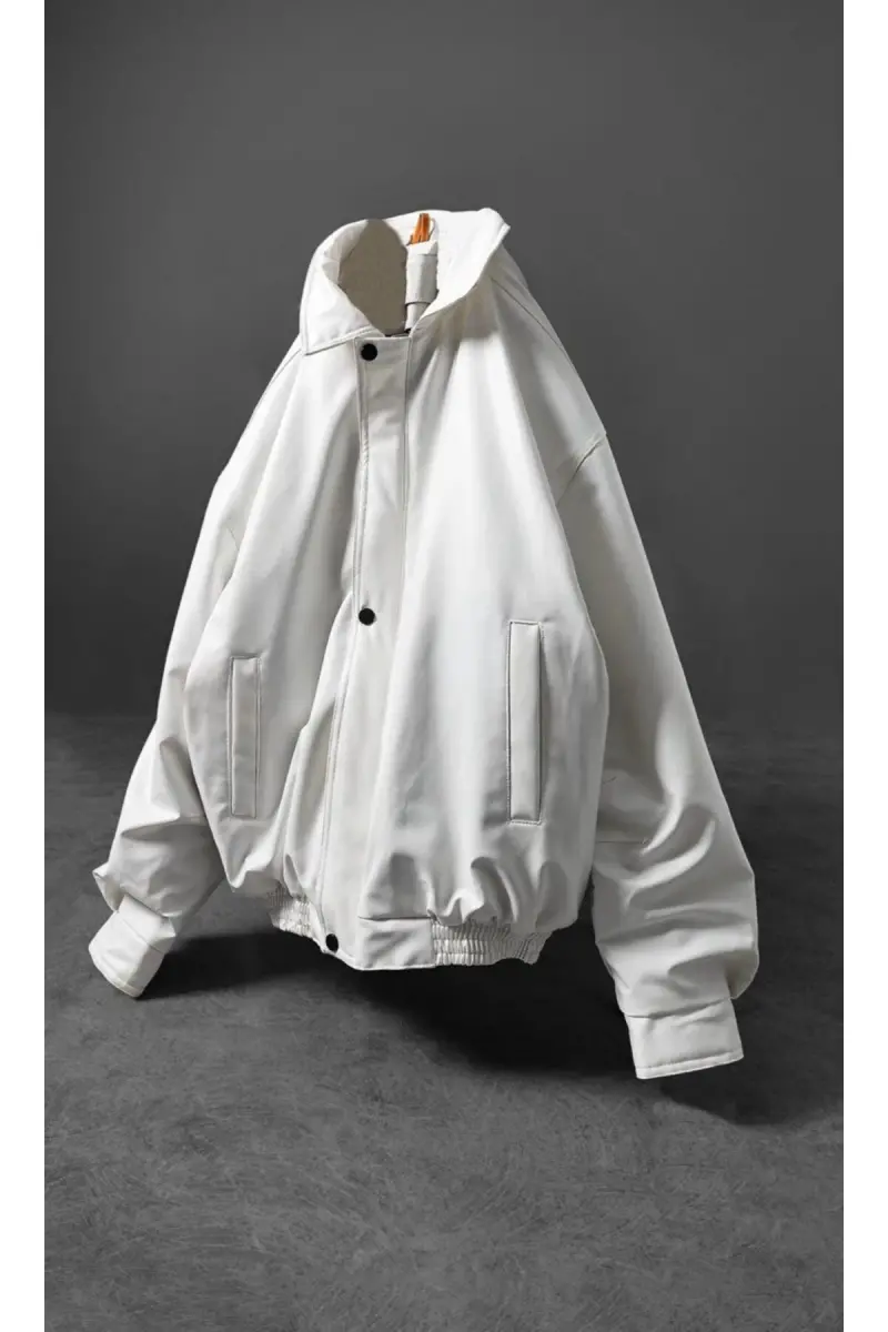 ERKEK OVERSİZE/SALAŞ PREMİUM BOMBER DERİ CEKET-Ekru deri