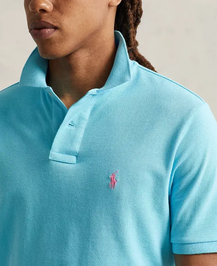 Men's Custom Slim-Fit Mesh Polo Shirt - Cabana Blue