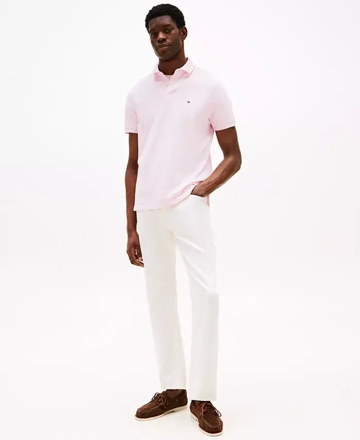 Meet timeless style and comfortable construction: Men's Cotton Classic Fit 1985 Polo - Light Pink! This special polo shirt is destined to become a staple in your wardrobe. From Tommy Hilfiger's iconic 1985 collection, this polo is made from high-quality pique cotton, offering unparalleled softness and breathability. Its design, enriched with subtle details, adds a modern touch to your classic style. The polo collar, adorned with Ithaca details, provides an elegant and sophisticated look, while the flag embroidery on the left chest is a unique reflection of the brand's identity. THFlex technology ensures all-day comfort and perfect shape retention. The classic cut, with extra width in the shoulder and chest areas, provides a relaxed fit. Ideal for every season and occasion, this polo shirt will perfectly complement a wide range of your outfits, from your jeans to your dress pants. A perfect choice for those seeking both comfort for everyday use and style for special occasions, the Men's Cotton Classic Fit 1985 Polo - Light Pink offers you a timeless style. Its light pink color complements all skin tones while helping you create a chic and modern look. Its machine-washable feature guarantees practical use. This polo shirt perfectly complements your style by combining style and comfort. Made with Tommy Hilfiger quality, this polo is a high-quality and stylish option that will accompany you for many years.
