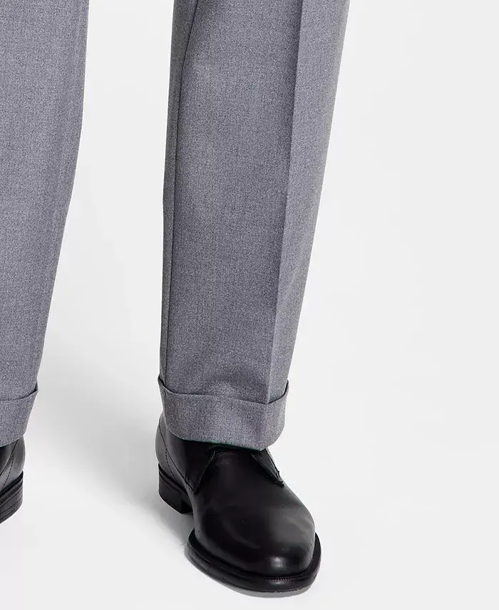 Men's Pleated Solid Classic Fit Pants. Regular Fit, Pleated, Belt Included.