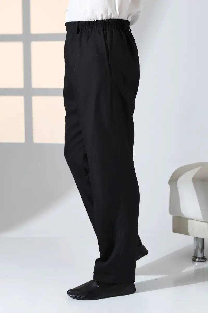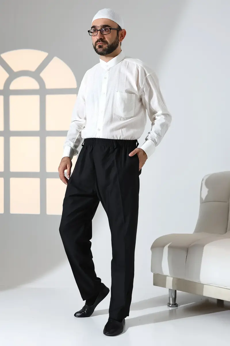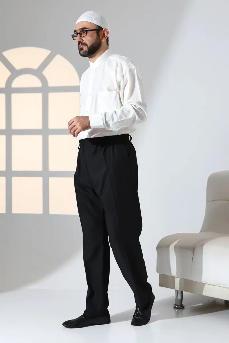 Erkek Rahat Kesim Beli Lastikli Cepli Hac ve Umre Kumaş Şalvar Pantolon - Siyah (ISR)-Siyah