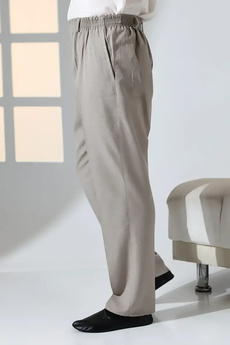 Erkek Rahat Kesim Beli Lastikli Cepli Hac ve Umre Kumaş Şalvar Pantolon, günlük giyiminiz için özel olarak tasarlandı. Toprak rengi ile her kombine uyum sağlayan bu şalvar pantolon, rahat kesimi ile hareket özgürlüğü sunar. Beli lastikli yapısı sayesinde kolayca giyilip çıkarılabilir ve gün boyu konforlu bir kullanım sağlar. Geniş cepleri ile eşyalarınızı güvenle saklayabilirsiniz. Hac ve umre gibi dini ziyaretlerinizde rahatlıkla tercih edebileceğiniz bu şalvar pantolon, şıklığınızı tamamlayacak. Kaliteli kumaştan üretilen bu şalvar pantolon, uzun yıllar boyunca dayanıklı bir kullanım sunar. Bakımı kolaydır ve ütü gerektirmez. Her mevsim rahatlıkla kullanabileceğiniz bu çok yönlü parça, gardırobunuzun vazgeçilmezlerinden biri olacak.