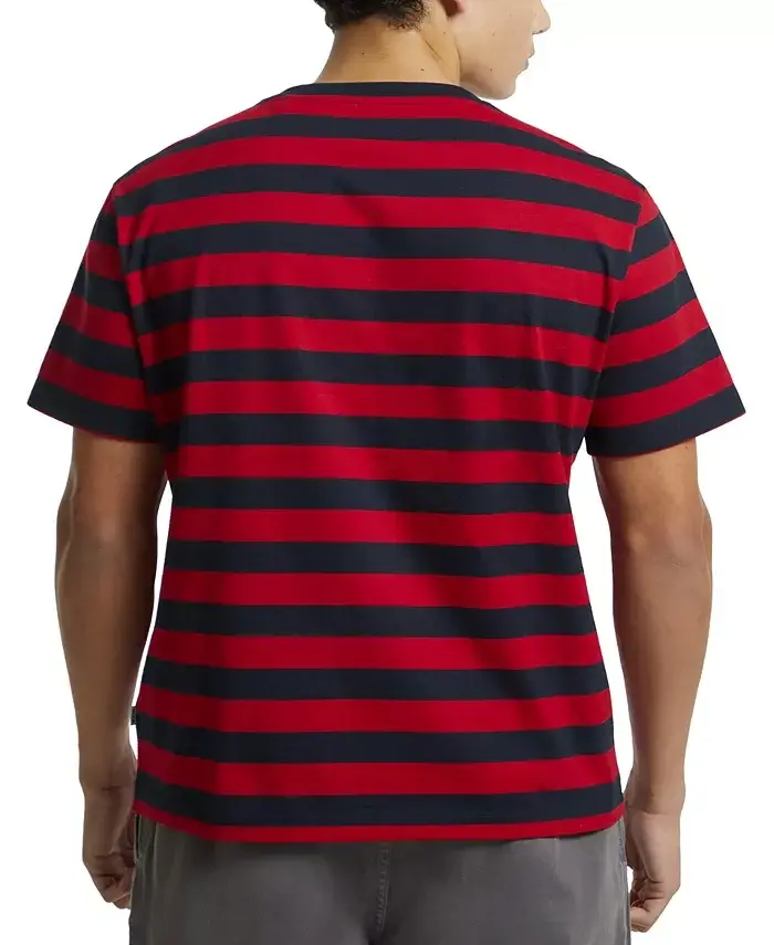 GUESS JEANS arşivlerinden ilham alınarak yeniden tasarlanan Men's Regular-Fit Stripe Embroidered Logo Graphic T-Shirt, klasik kesimi ve çarpıcı detaylarıyla öne çıkıyor. Kaliteli jersey kumaşı, gün boyu konfor sağlarken, kalın çizgili deseni ve işlenmiş logo monogramı, tişörte özgün bir hava katıyor. Kırmızı ve mavi tonlarındaki çizgiler, dinamik ve modern bir görünüm sunarken, işlenmiş logo, markanın mirasını ve kalitesini vurguluyor. Kısa kollu tasarımı ve fitilli bisiklet yakası, tişörtü hem rahat hem de şık hale getiriyor. İster günlük kullanımda ister özel kombinlerinizde tercih edebileceğiniz bu tişört, gardırobunuzun vazgeçilmez parçalarından biri olacak. Organik pamuktan üretilmiş olması, hem cildinize dost hem de çevreye duyarlı bir seçim yapmanızı sağlıyor. Men's Regular-Fit Stripe Embroidered Logo Graphic T-Shirt, stil sahibi erkeklerin beğenisini kazanacak, zamansız bir tasarım sunuyor. GUESS JEANS'in ikonikleşmiş tasarımlarından biri olan bu tişört, retro ve modern çizgileri bir araya getirerek fark yaratıyor. Üzerinize giydiğiniz anda tarzınızı yansıtacak ve dikkatleri üzerinize çekecek olan bu tişört, her ortamda kendinizi iyi hissetmenizi sağlayacak. Gerek işlenmiş logosu gerekse canlı renkleriyle kombinlerinize enerji katacak olan bu özel tasarım, kaliteyi ve şıklığı bir arada arayan erkekler için ideal bir seçenek.