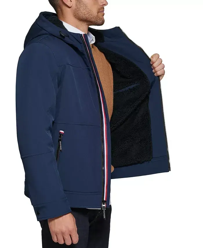 Erkek Şerpa Astarlı Softshell Kapüşonlu Ceket. Bu softshell ceket ile sıcak ve rahat kalın, ek sıcaklık için şerpa astarlı gövdeye ve kapüşona sahiptir. Suya dayanıklı kumaş sizi hava koşullarından korurken, ayarlanabilir kapüşon ve manşetler özelleştirilebilir bir uyum sağlar. Çoklu cepler, temel eşyalarınız için uygun saklama alanı sunar. Soğuk havalardaki aktiviteler için mükemmeldir.