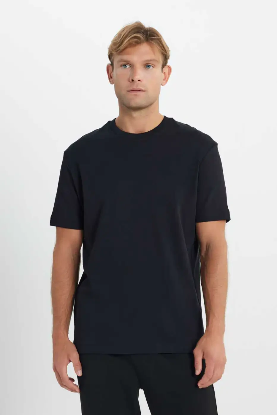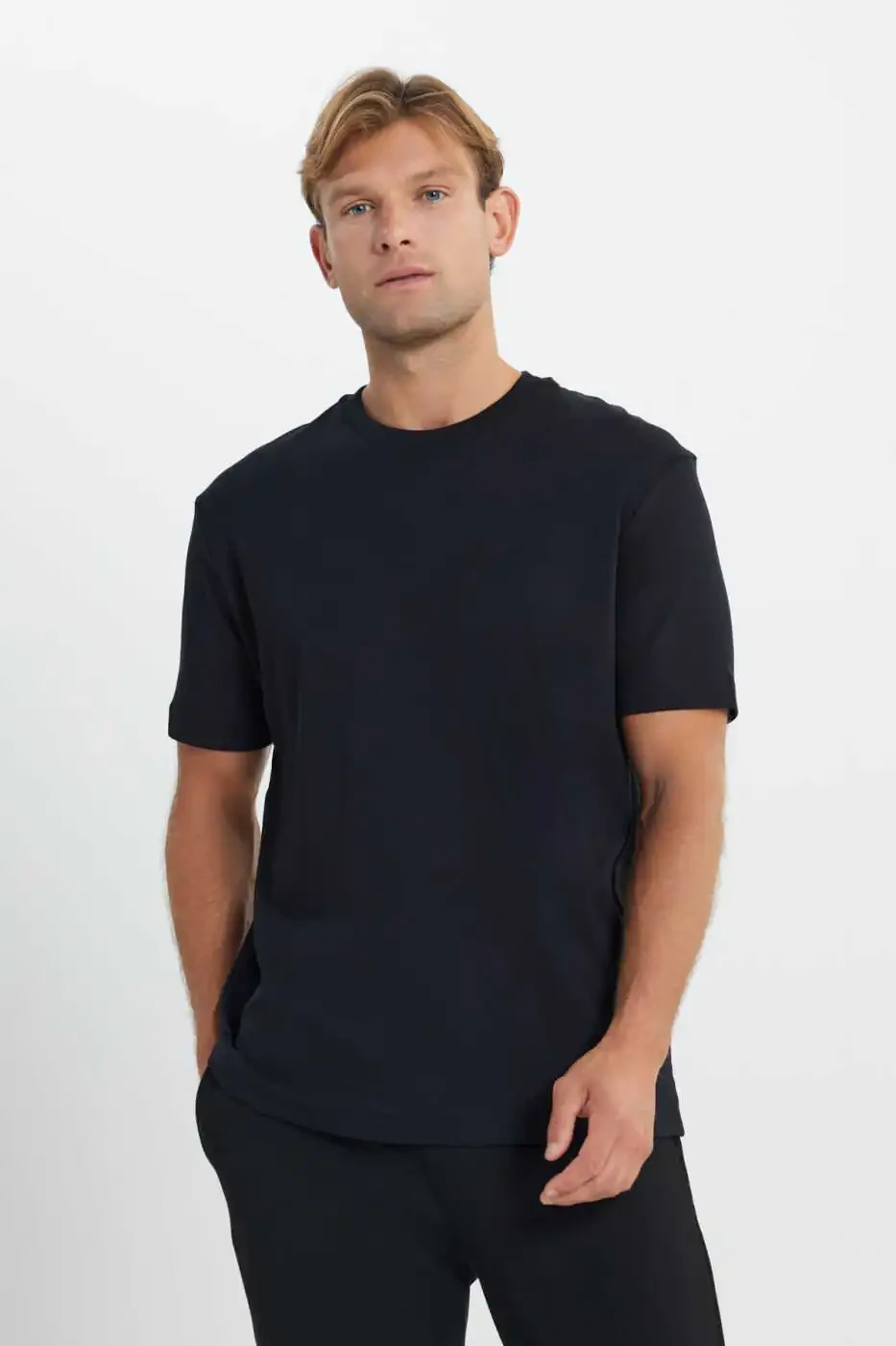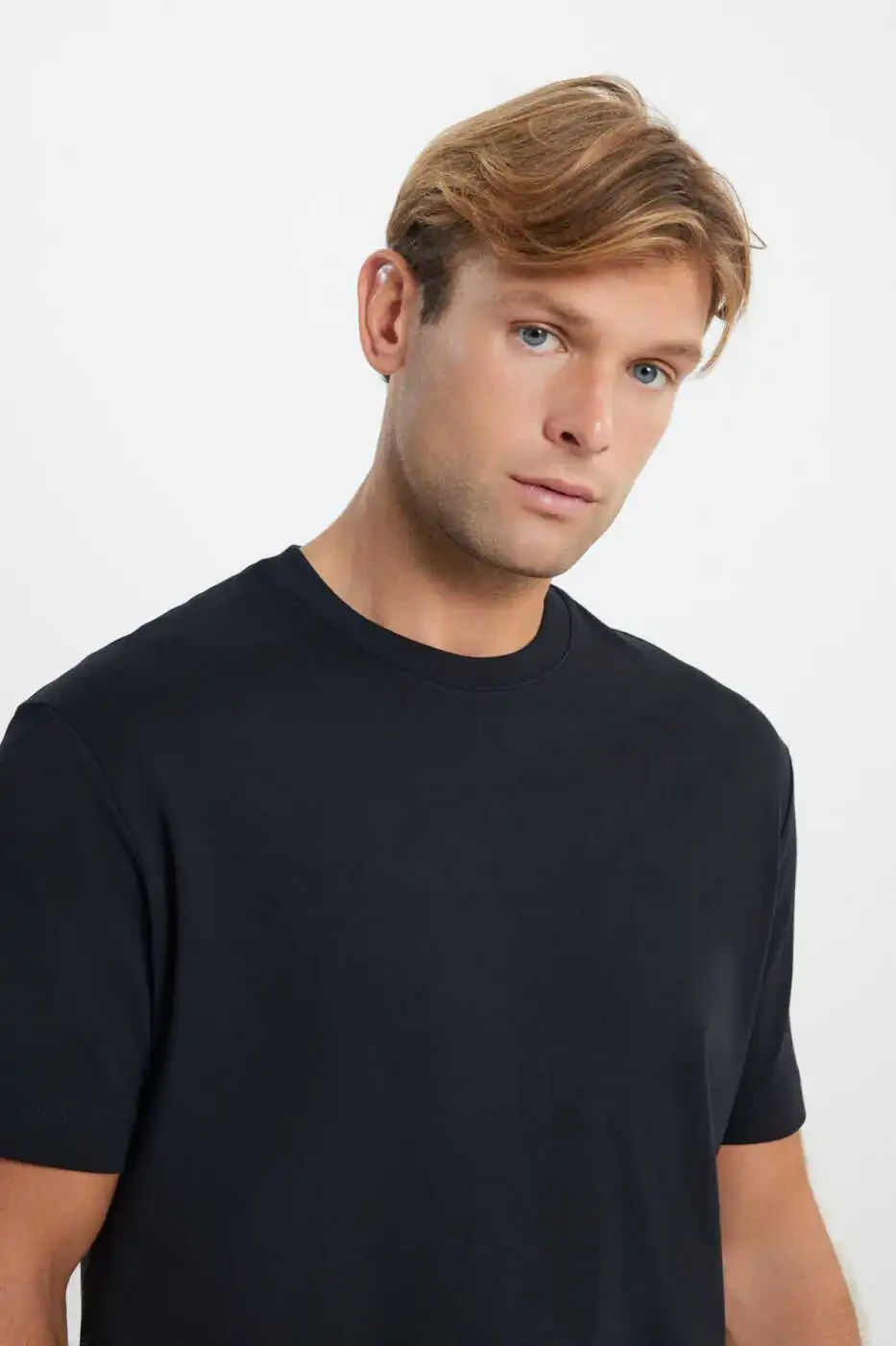 Мужская черная футболка из 100% хлопка Modern Fit обычного кроя, разработанная для современных мужчин, которые ищут идеальное сочетание стиля и комфорта, станет незаменимой частью вашего гардероба. Изготовленная из 100% хлопчатобумажной ткани, эта футболка с круглым вырезом выделяется своим комфортом и воздухопроницаемостью в течение всего дня. Дизайн Modern Fit идеально садится по фигуре, не стесняя движений. Обычный крой подходит для любой фигуры, обеспечивая стильный и уверенный внешний вид. Черный цвет легко сочетается с любым нарядом, предлагая вневременную и классическую элегантность. На работе, в повседневной жизни или на торжественных мероприятиях вы всегда будете чувствовать себя стильно и комфортно в этой футболке. Благодаря высококачественной ткани и прочной конструкции, мужскую черную футболку из 100% хлопка Modern Fit обычного кроя вы сможете использовать без проблем долгие годы. Мягкая текстура нежна к вашей коже, а прочность гарантирует длительный срок службы. Вы можете комбинировать эту футболку с джинсами, чинос или элегантными брюками, легко создавая разные стили. Закажите прямо сейчас и ощутите этот исключительный комфорт и стиль!