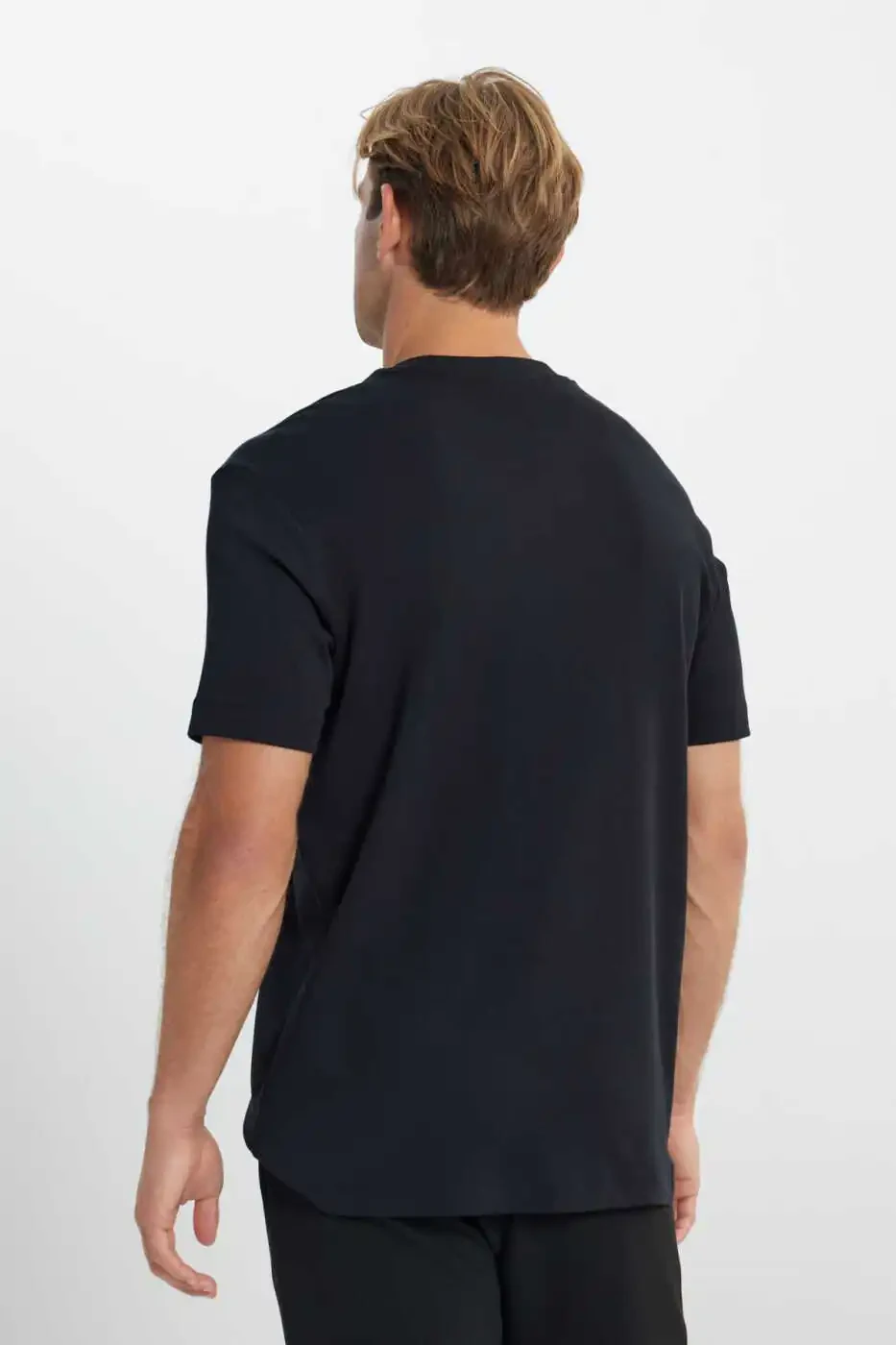 Мужская чёрная хлопковая футболка с круглым вырезом — современный крой