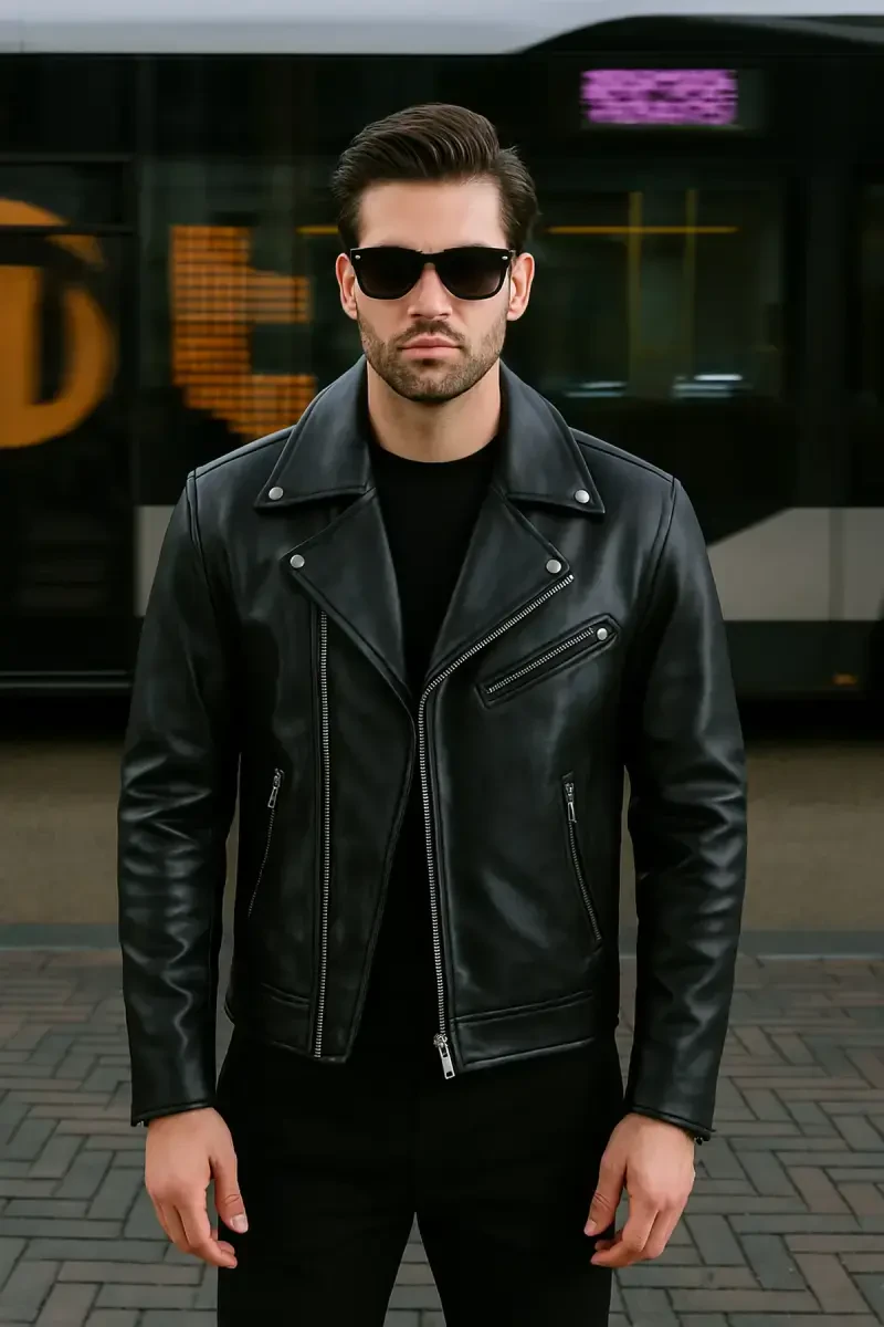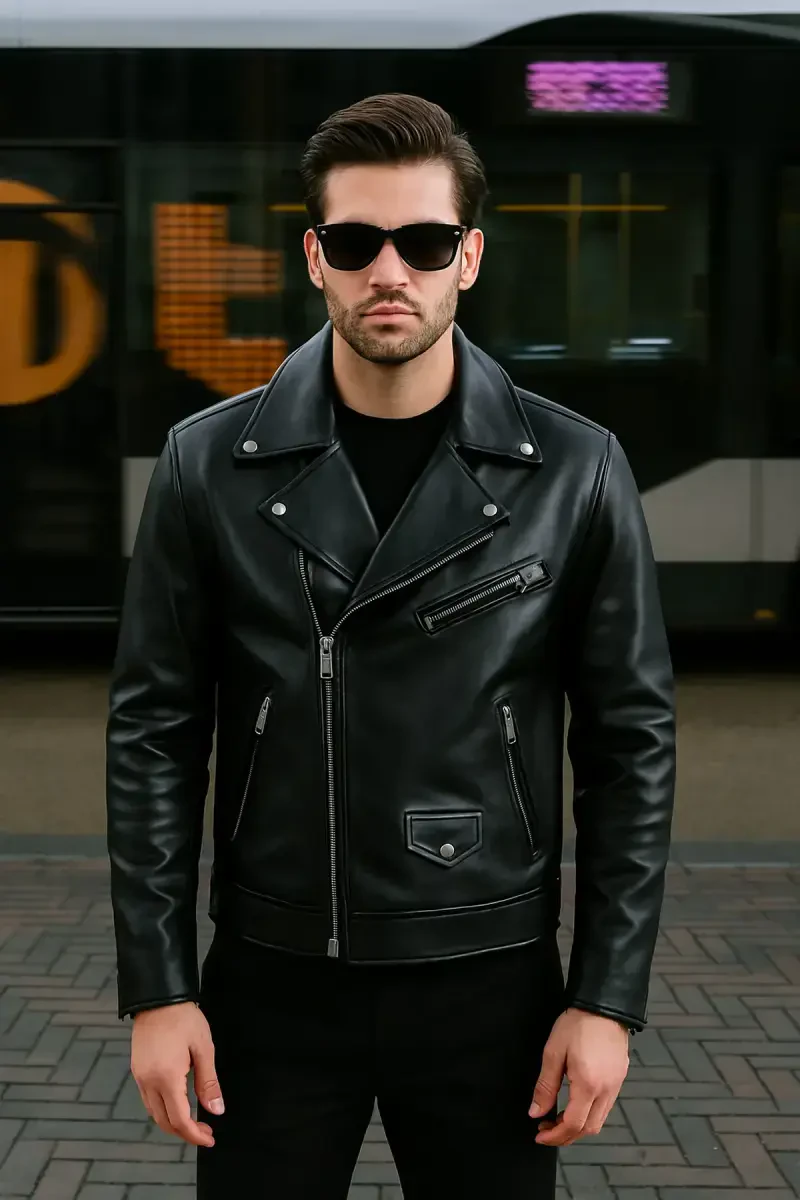 Эта стильная кожаная куртка идеально сочетается с джинсами, футболками и рубашками, помогая вам создать стиль, который адаптируется к любой обстановке.