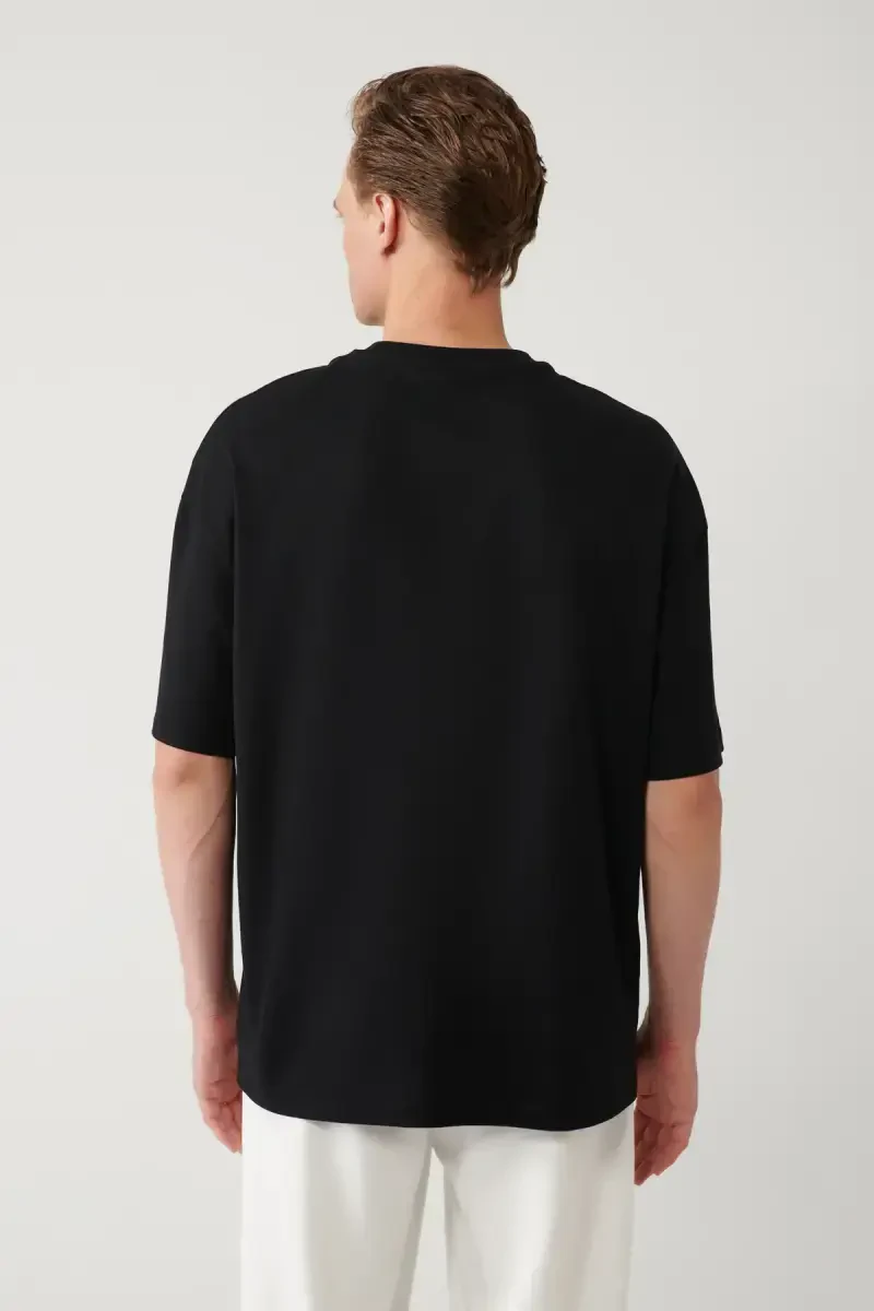 Мужская черная футболка оверсайз с круглым вырезом и принтом - A41y1173 | Комфорт и стиль