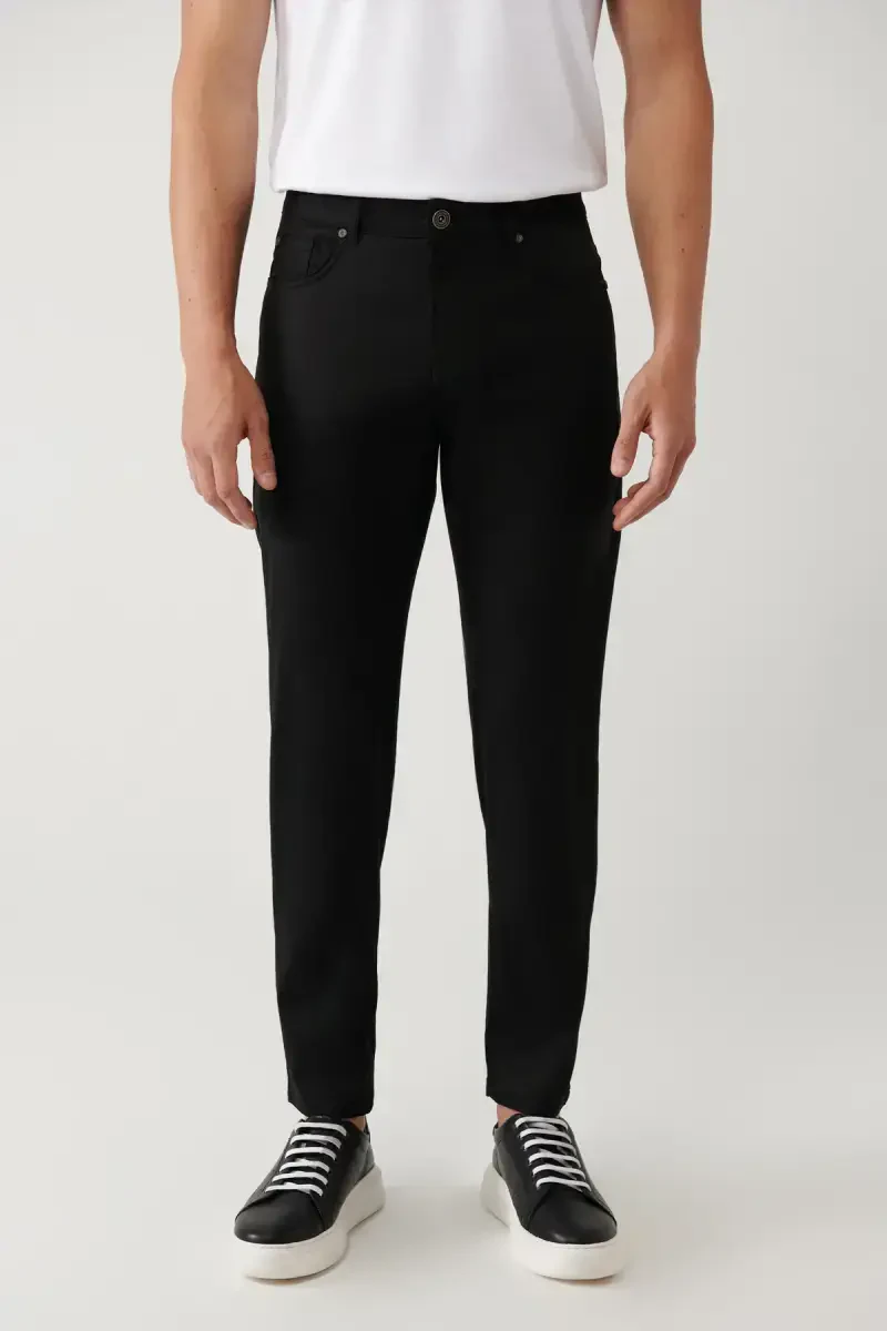 Почувствуйте стиль и комфорт с мужскими черными классическими брюками с усиленными карманами Perge Slim Fit A41Y3071!