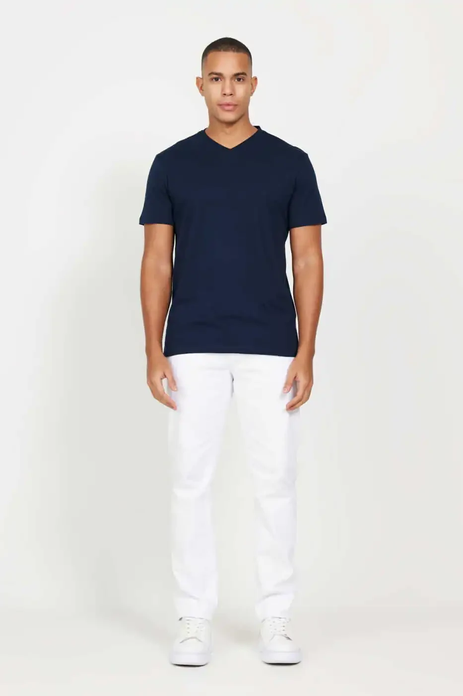 Refresh your wardrobe with the Men's Black-Navy Blue 2-Pack V-Neck 100% Cotton Slim Fit Narrow Cut Basic T-Shirt. These specially designed t-shirts combine elegance and comfort, allowing you to feel good in any environment. Thanks to their slim fit cut that perfectly fits your body lines, these t-shirts help you achieve a modern and dynamic look. As an indispensable part of the Basic collection, these t-shirts are ideal for daily use and easily adapt to different combinations. The knitted fabric structure offers flexibility and comfort throughout the day, while the short length design keeps you cool and fresh in the summer months. Thanks to its short-sleeved structure, your freedom of movement is not restricted and you can easily use it in hot weather. The V-neck design can easily adapt to both your sporty and casual style, so you always look stylish and well-groomed. Pocket details offer practical use, while adding a dynamic touch to your style. The star pattern gives the t-shirts a striking and trendy look, allowing you to make a difference in any environment. Appealing to all age groups, these t-shirts appeal to a wide user base. Thanks to its 100% cotton structure, it allows your skin to breathe and offers comfortable use throughout the day. These t-shirts, which you can easily prefer in your daily activities or on special occasions, are the easiest way to reflect your style. These t-shirts, which will be an indispensable part of your wardrobe, are an excellent choice for men who seek both elegance and comfort. Produced with Altınyıldız Classics quality, these t-shirts offer long-lasting use and durability. You can always be stylish with these t-shirts that prioritize your elegance and comfort.