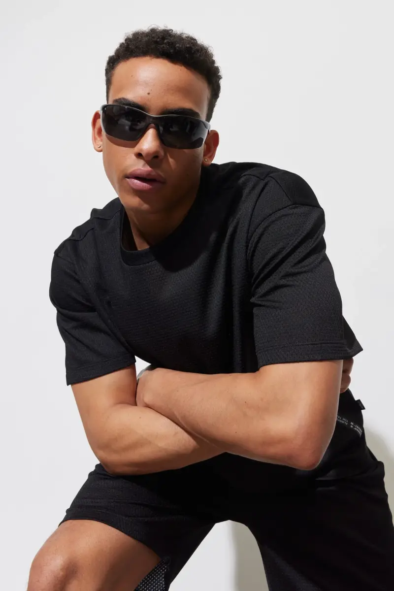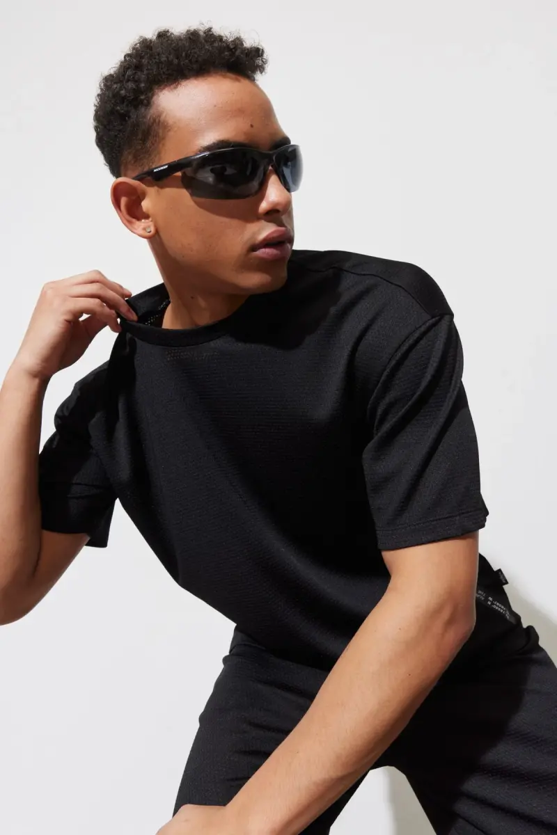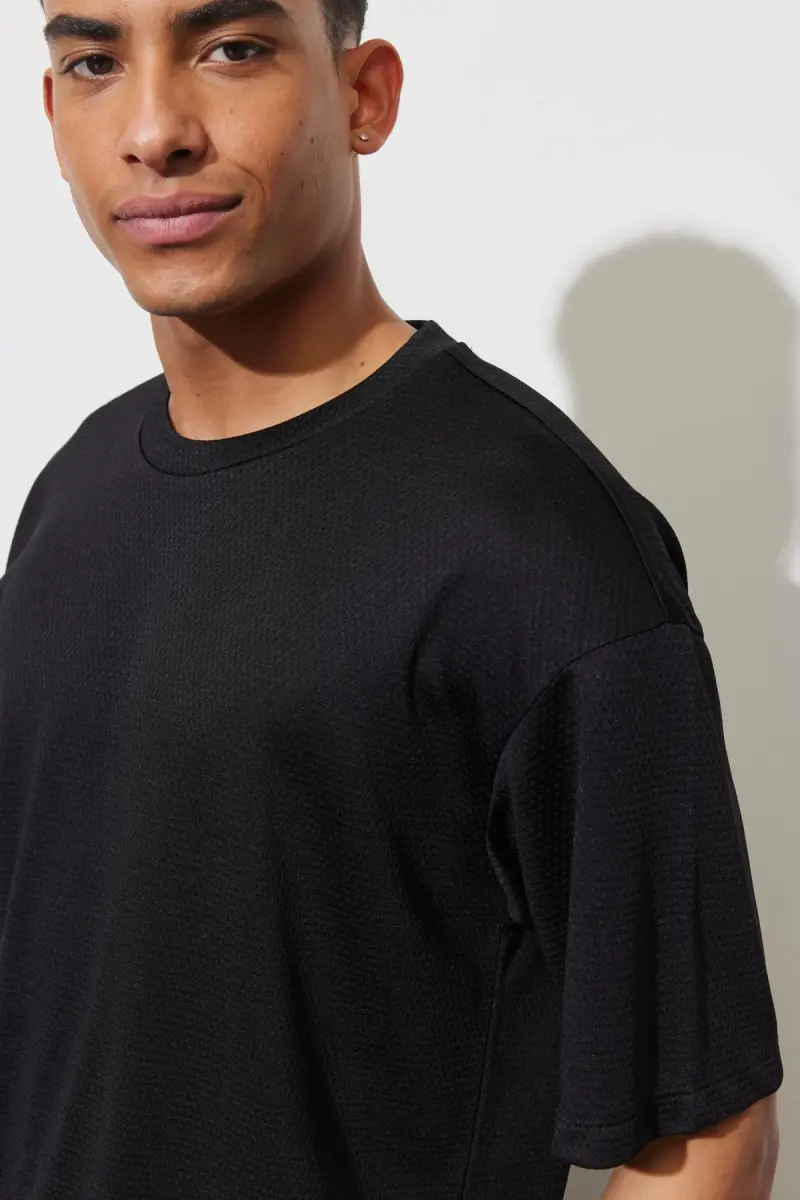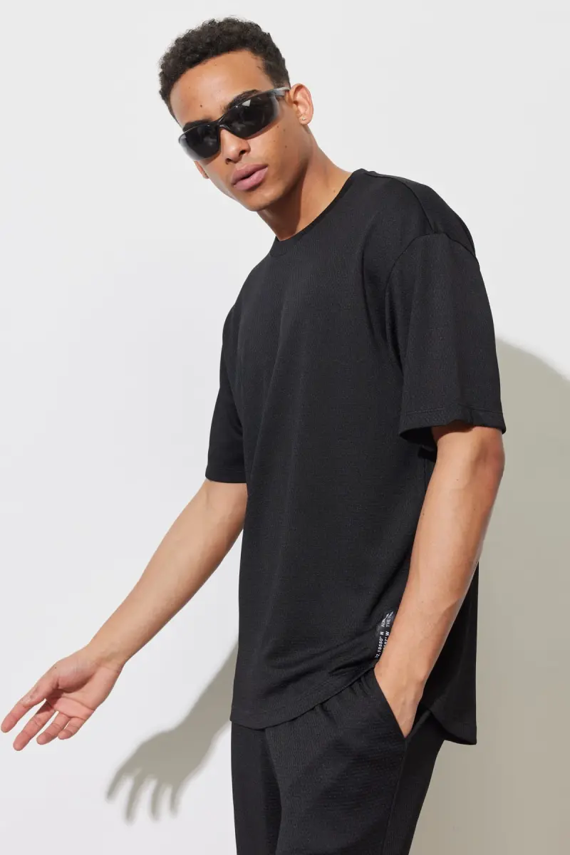 Erkek Siyah Loose Fit Bisiklet Yaka Yumuşak Dokulu Spor Tişört-Siyah