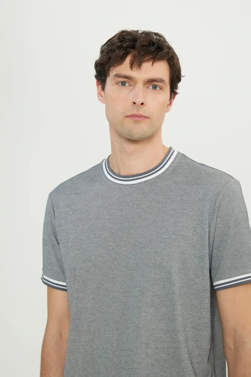 Erkek Siyah Pamuklu Slim Fit Dar Kesim Bisiklet Yaka Tişört-Siyah