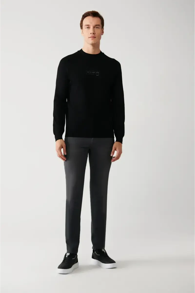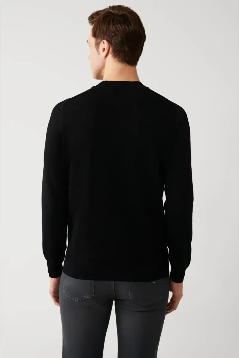 You can create combinations with this sweater with jeans, chino pants or dress pants. Complete the look with sneakers or leather shoes for a stylish and modern look. If you're someone who cares about your style, this men's black rayon knit sweater is for you!