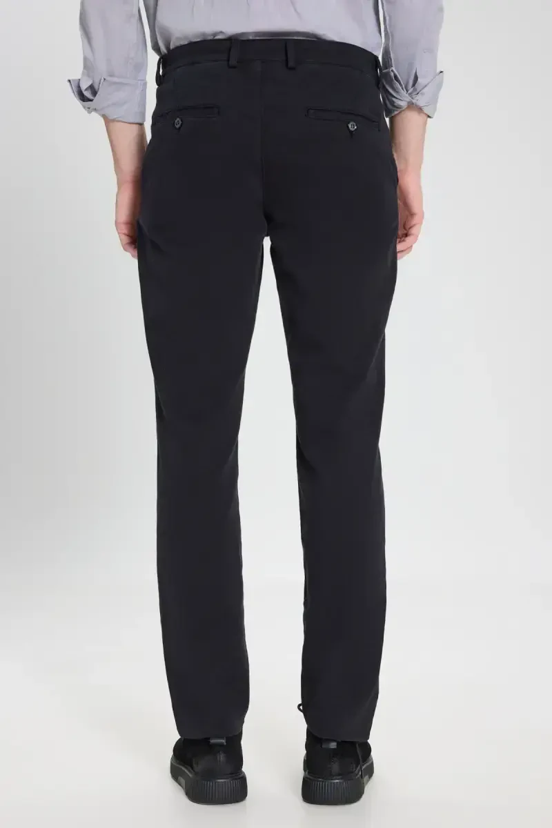Experience elegance and comfort with the Men's Black Slim Fit Narrow Cut Cotton Stretch Armored Side Pocket Pants. These pants are poised to become an indispensable part of the modern man's wardrobe. Meticulously designed and produced by KASIM METİK, these pants stand out with their superior quality material and impeccable craftsmanship. The slim fit cut creates a stylish silhouette that hugs the body, while the narrow leg design offers a modern look. The armored fabric adds a distinctive touch to the pants, while the cotton and elastane blend ensures comfortable wear all day long. Functionality is prioritized with the side pockets. Whether you wear them in daily life or at a special event, these pants will accompany you in any setting. Altınyıldız Classics Slim Fit Narrow Cut Cotton Stretch Armored 5 Pocket Pants are one of the most popular pieces of the Winter Collection. Product Code: ACE012510149SYH. Model's measurements: Height: 1.89cm, Weight: 80kg, and wearing size: 50. These pants are ready to be the choice of stylish men. While the flexible structure does not restrict your freedom of movement, you do not compromise on your stylish appearance. Don't miss out on these pants that will be a must-have in your wardrobe. The 97% cotton content allows your skin to breathe, while the 3% elastane provides flexibility. The non-elastic normal waist cut offers comfortable wear all day long. The black color complements any combination, while the armored texture creates a different style. Enjoy being both stylish and comfortable with these pants. Whether you combine them with a shirt and jacket to create a classic style, or with a t-shirt and sneakers for a sportier look, these pants will help you reflect your style in every situation and will be the most beloved piece of your wardrobe.