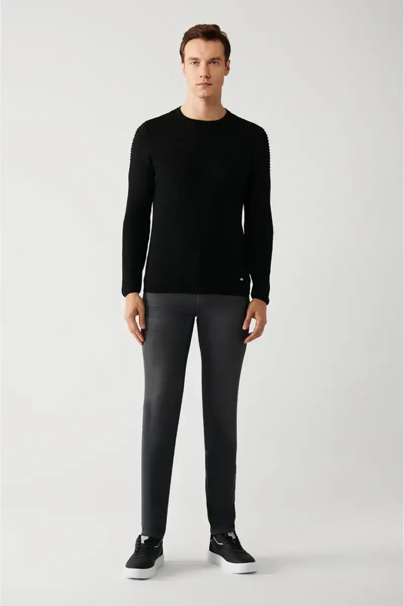 Мужской черный трикотажный свитер с круглым вырезом, фактурный вискозный, свободного кроя A32y5136