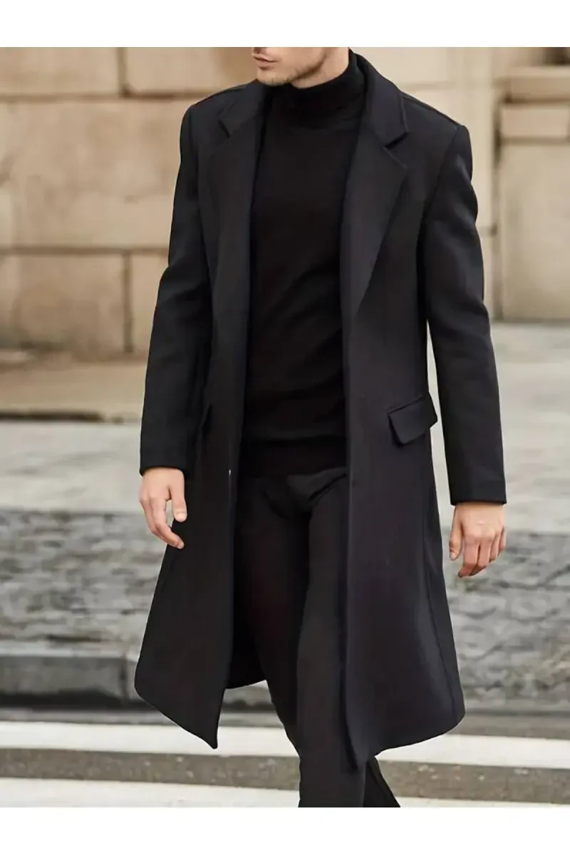 The men's black slim fit long wool blend cashmere coat is the perfect choice for those who seek style and warmth in everyday use, special events and business life. The coat's elegance and quality will make you stand out in any environment.