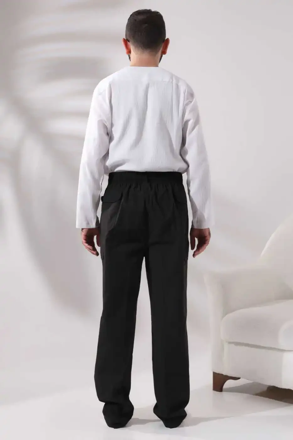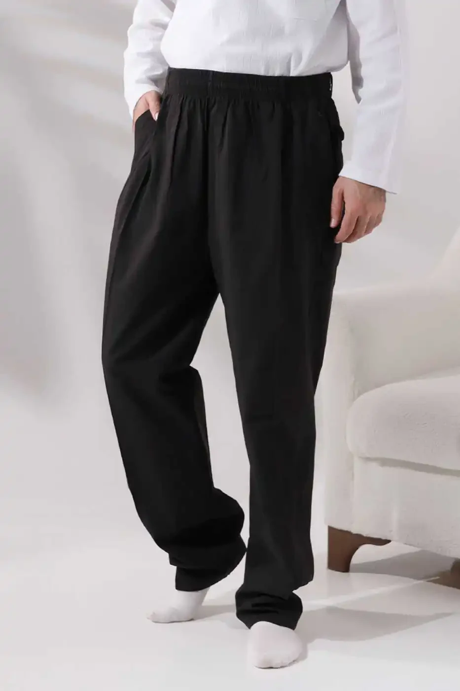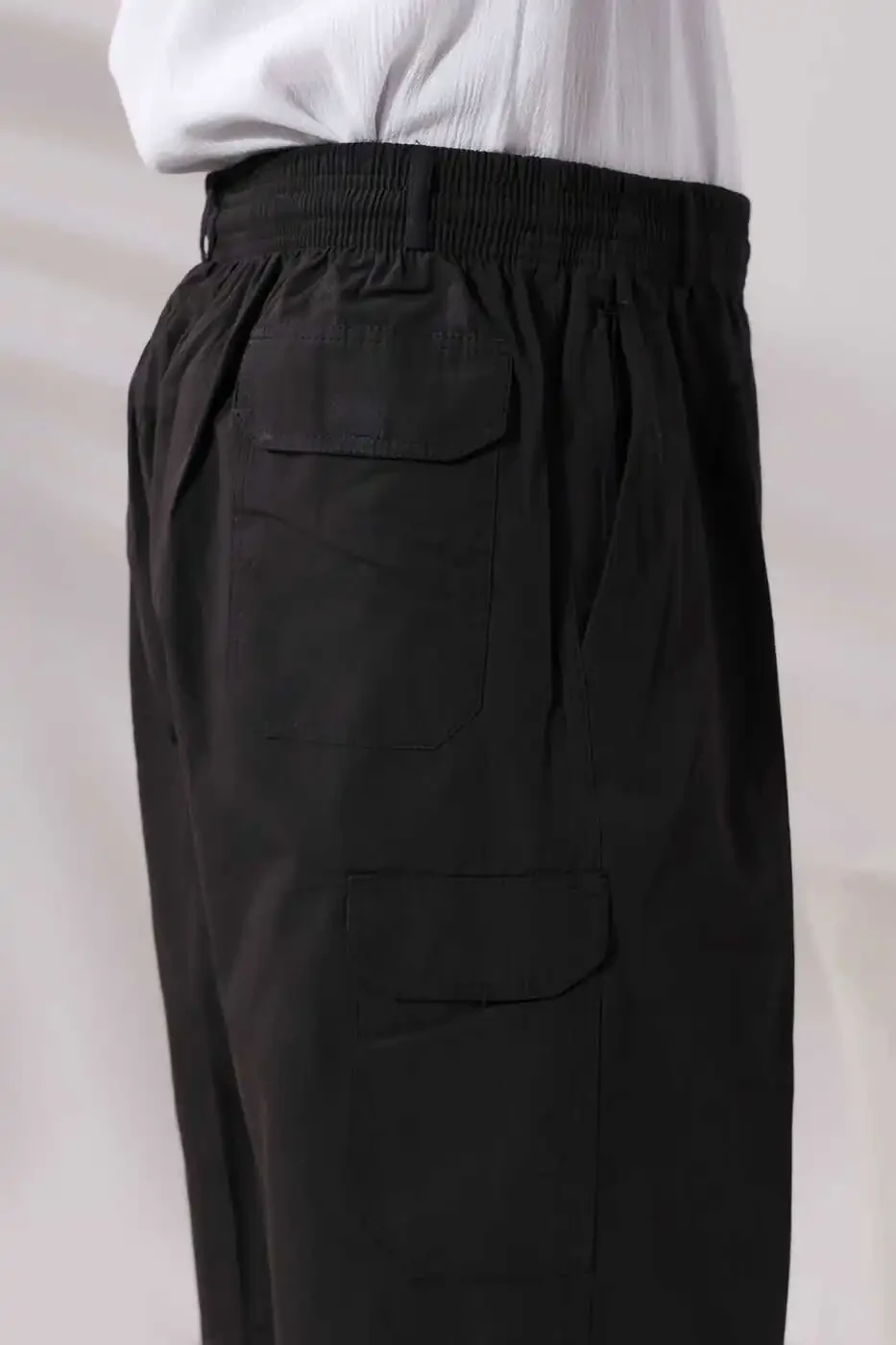 Men's pants, black pants, cargo pants, loose fit pants, elastic waist pants, hac pants, umrah pants, shalwar pants