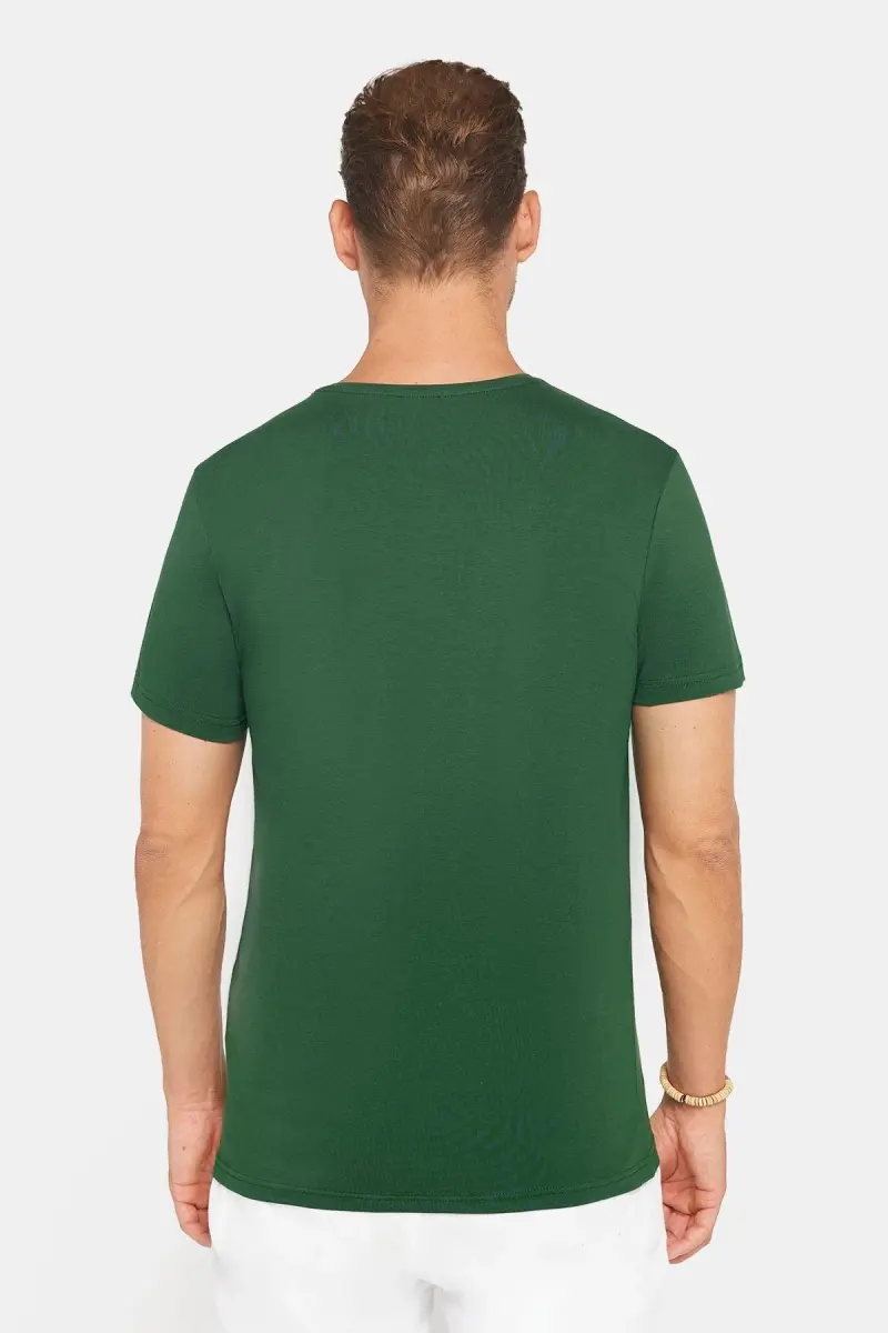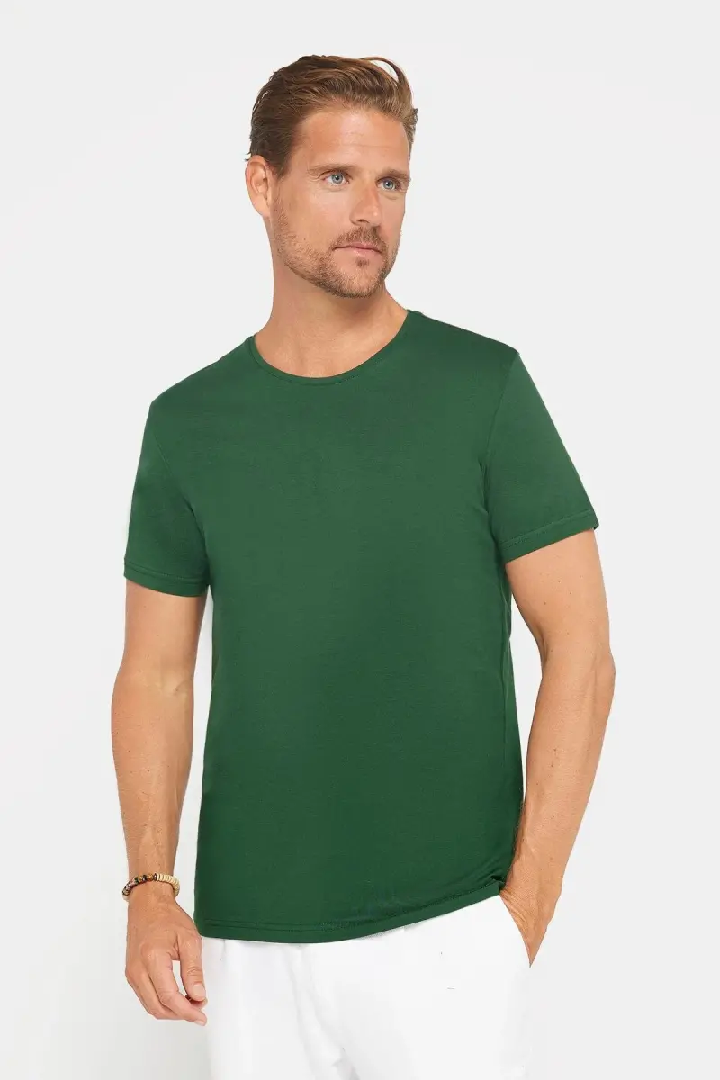 Erkek Slim Fit Dar Kesim Pamuklu Yumuşak Doku Likralı Esnek Kumaş Basic Yeşil Bisiklet Yaka Tişört-Yeşil1