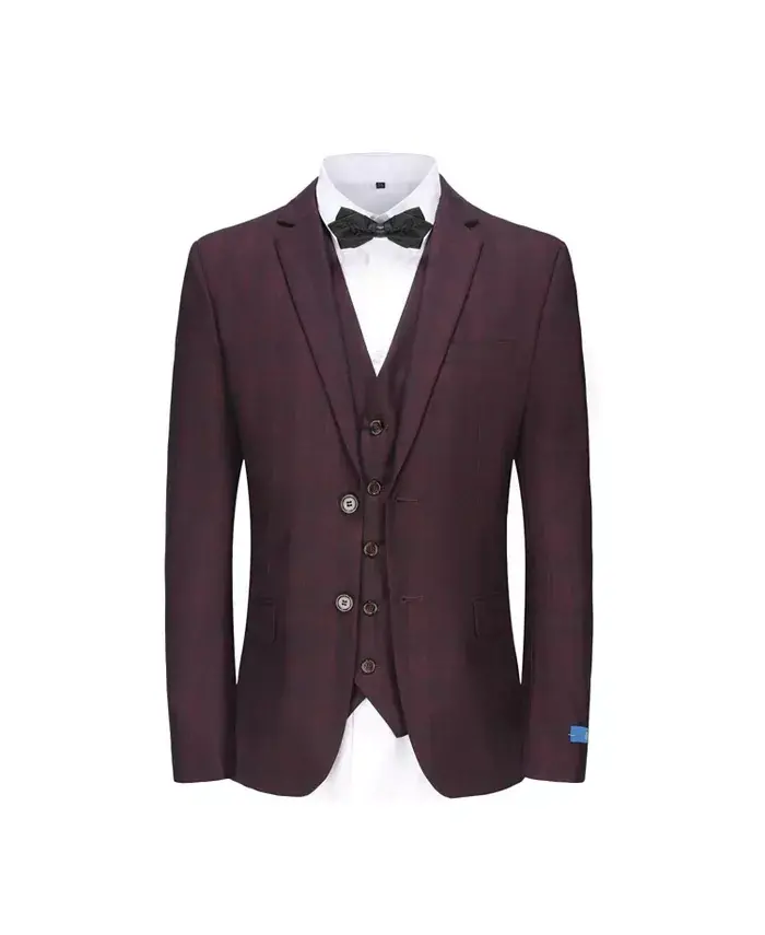 Men's 3-Piece Slim Fit Check Suit - Burgundy, iş hayatında, özel davetlerde ve günlük hayatta şıklığı ön plana çıkarmak isteyen erkekler için ideal bir seçimdir. Kaliteli kumaş yapısı, özenle tasarlanmış kesimi ve modern detaylarıyla, her detayda kusursuzluğu hedefleyen bir takım elbisedir. Ürünün uzun ömürlü olması için kuru temizleme yapılması önerilir. Boy seçeneklerini ve bel ölçüsü hesaplamasını dikkate alarak, size en uygun bedeni seçebilirsiniz. Unutmayın, doğru beden seçimi, takım elbisenizin size mükemmel bir şekilde oturmasını ve şıklığınızı tamamlamasını sağlar.