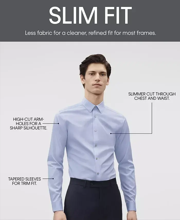 Erkek gömlek, slim fit, ütüsüz gömlek, pamuklu gömlek, fransız manşet, Calvin Klein, mavi gömlek, OEKO-TEX, nem emici, şık gömlek