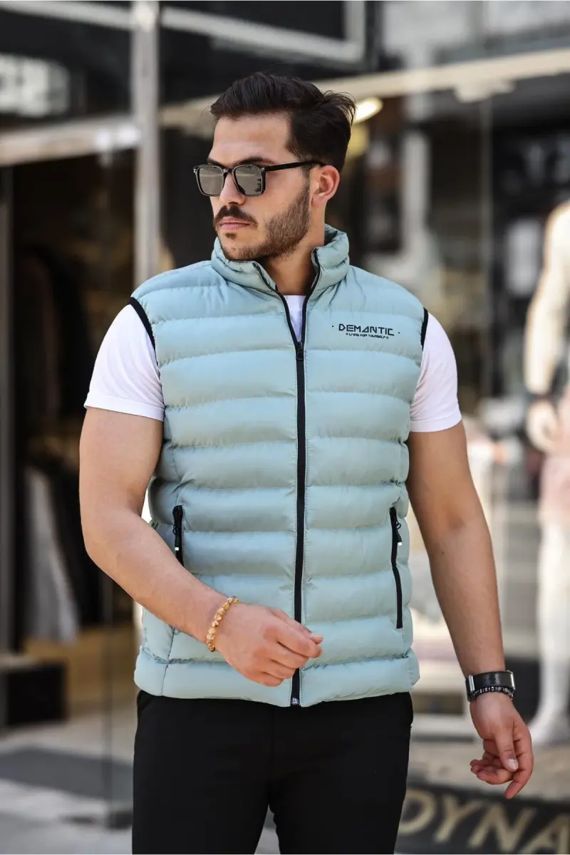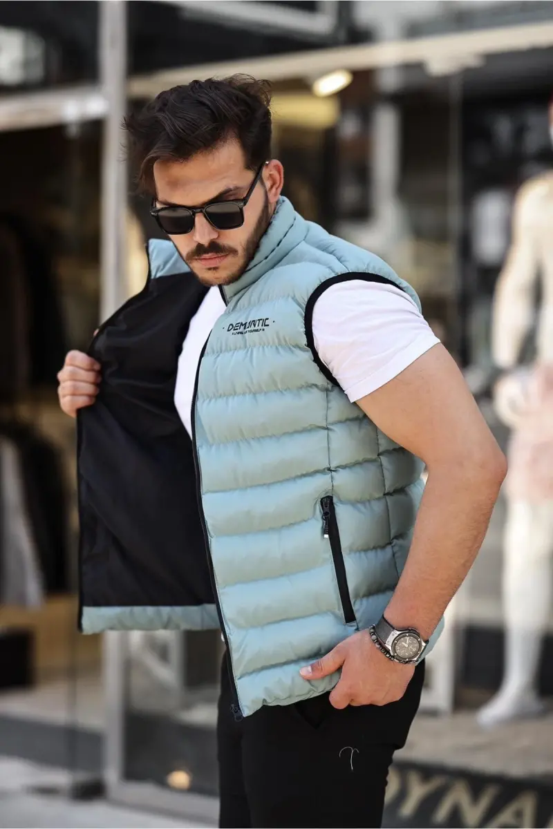 Erkek Su Yeşili Şişme Yelek Iç Astarlı Su Geçirmez-Su Yeşili