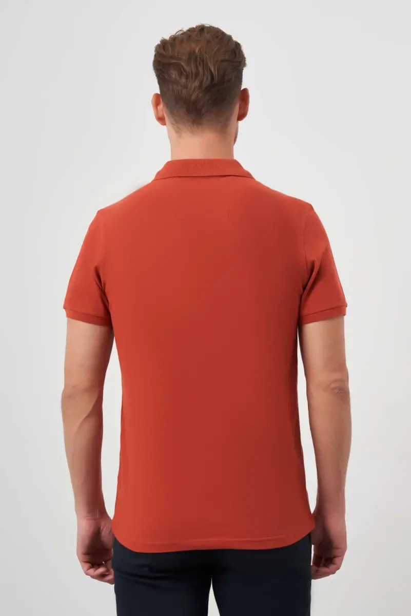 Erkek Tarçın Basic Düz %100 Pamuk Slim Fit Dar Kesim Kısa Kollu Polo Yaka Tişört
