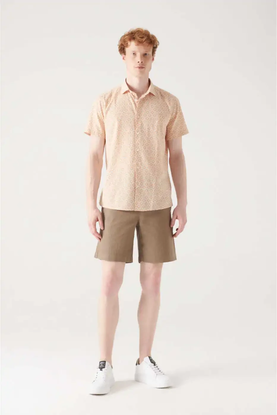 **Men's Orange Geometric Printed Short Sleeve Cotton Shirt A21y2095 Features:**