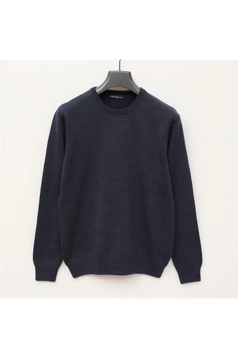 Erkek Uzun Kol İnce Sweatshirt - 180541 - Koyu İndigo Melanj-KOYU İNDİGO MELANJ