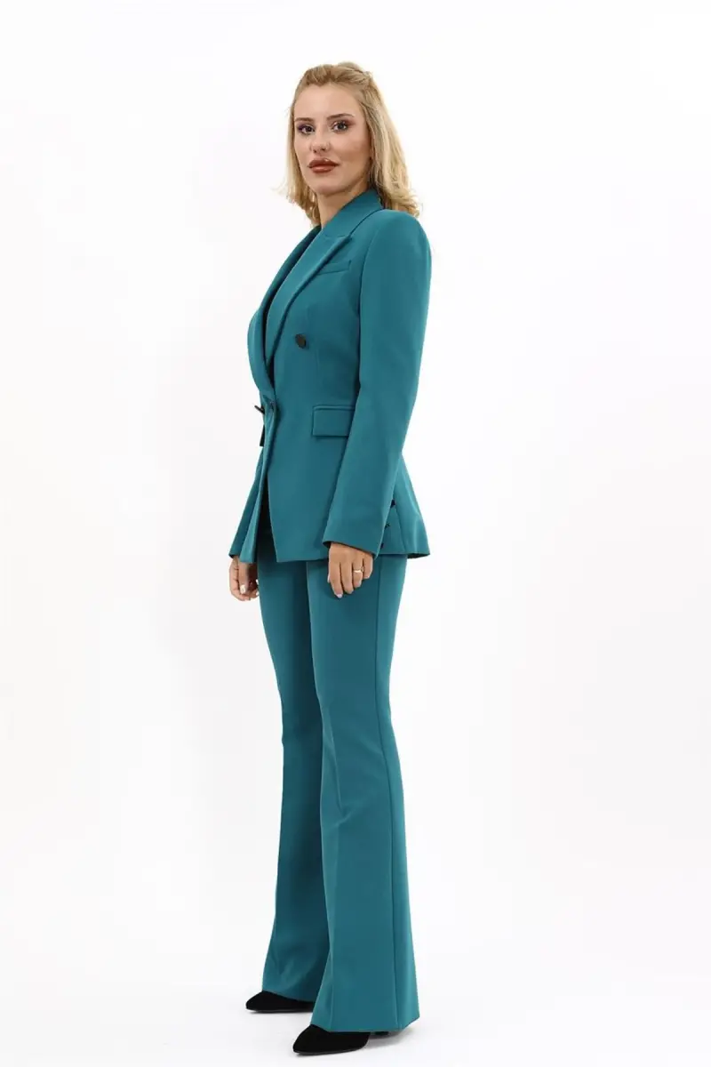 Erkek Yaka Tek Düğmeli Klasik Ceket & İspanyol Paça Pantolon-Petrol-Petrol