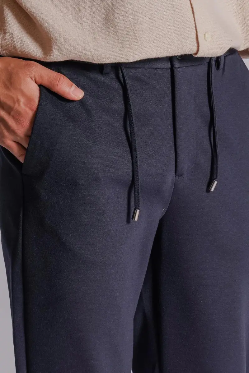 Erkek Yandan Cepli Beli Lastikli Relaxed Fit Chino Pantolon Lacivert-LACİVERT