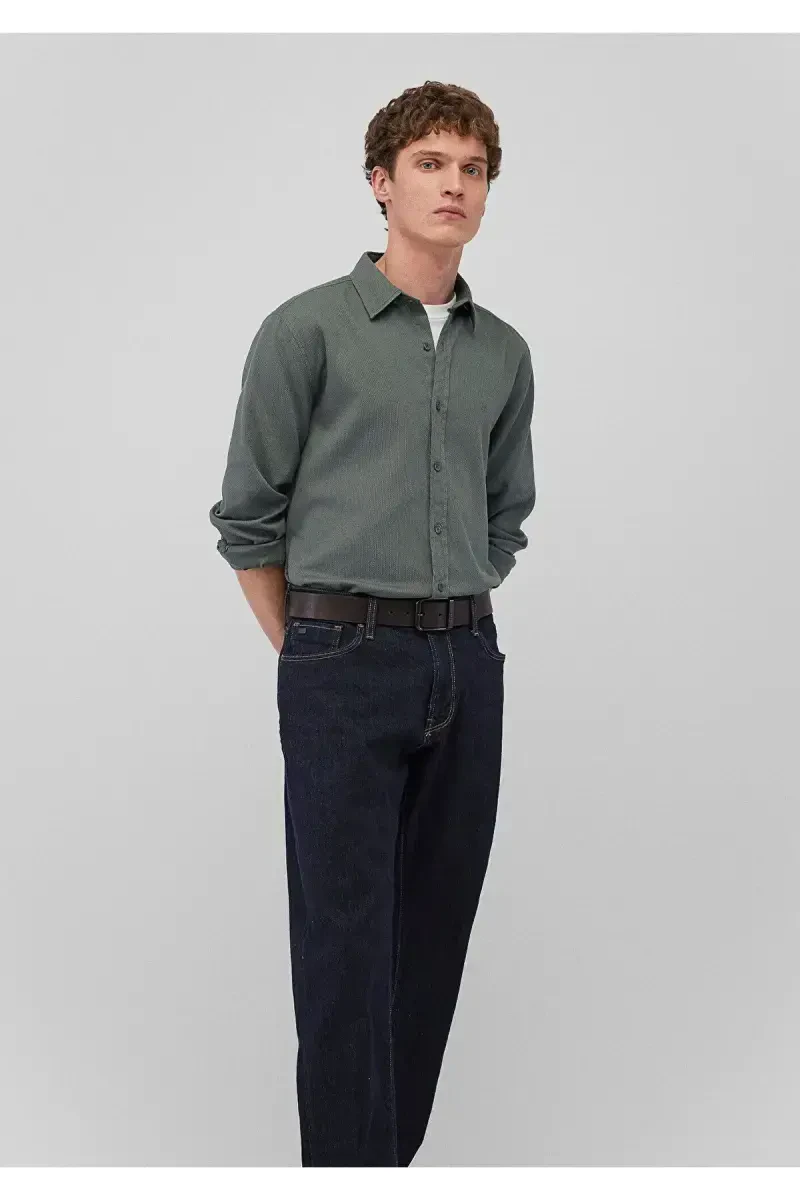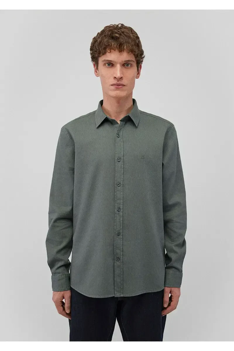 Мужская зеленая M0211091-85370 рубашка из ткани в рубчик