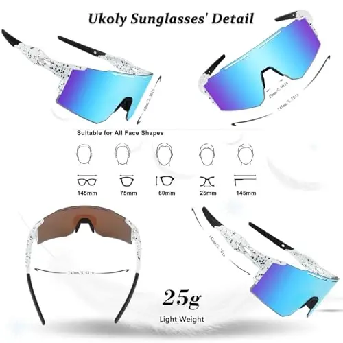 Ukoly Polarize Spor Güneş Gözlükleri, erkekler ve kadınlar için tasarlanmıştır. Bu güneş gözlükleri; bisiklet, beyzbol, koşu ve tüm açık hava etkinlikleri için idealdir. 3 adet değiştirilebilir lens, UV400 koruması, hafif tasarım ve dayanıklı çerçeveye sahiptir.