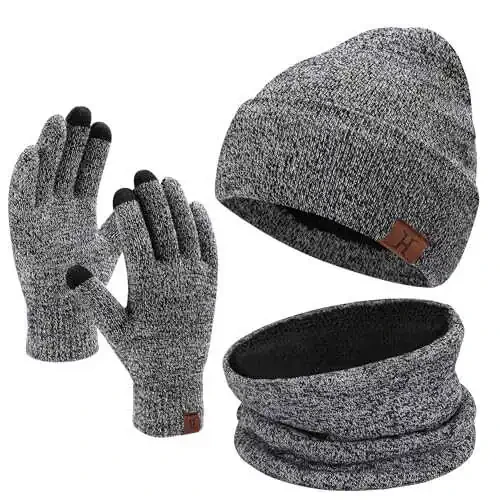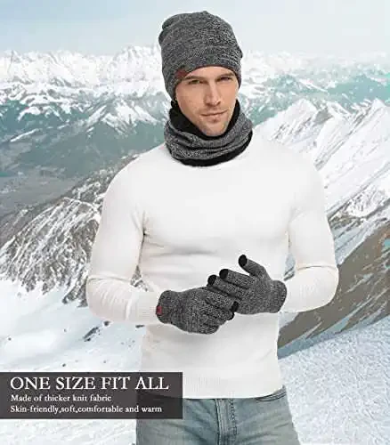 The Winter Beanie Hat Scarf Touchscreen Gloves Set is specially designed for your comfort and warmth on cold winter days. This 3-piece set consists of a warm beanie, a soft and long scarf, and gloves suitable for sensitive touchscreen use. The entire set is made of high-quality knitted material and lined with warm fleece. This way, it does not let the cold air from outside in and protects your body temperature. The beanie is designed to protect your head and ears from wind and cold. The scarf wraps around your neck to keep you warm and offers a stylish look. The gloves are compatible with touchscreens, so you do not need to take them off when using your phone or tablet. This practical feature provides great convenience in cold weather. The unisex design of the set can be easily used by both men and women. Thanks to the different color options, you can choose the one that suits your style best. Whether for daily use or while doing winter sports such as skiing and snowboarding, the Winter Beanie Hat Scarf Touchscreen Gloves Set will always be with you and protect you from the cold. This set is also a great gift option for your loved ones. By gifting them warmth and comfort, you can help them have a more enjoyable winter. Defy the cold with the Winter Beanie Hat Scarf Touchscreen Gloves Set and enjoy the winter!