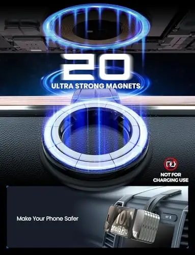 The eSamcore Magnetic Phone Holder is the perfect solution for holding your phone securely and conveniently in your car. Equipped with 20 strong magnets, this holder securely holds MagSafe compatible devices such as iPhone 15, 14, 13 Pro Max, Mini and more.