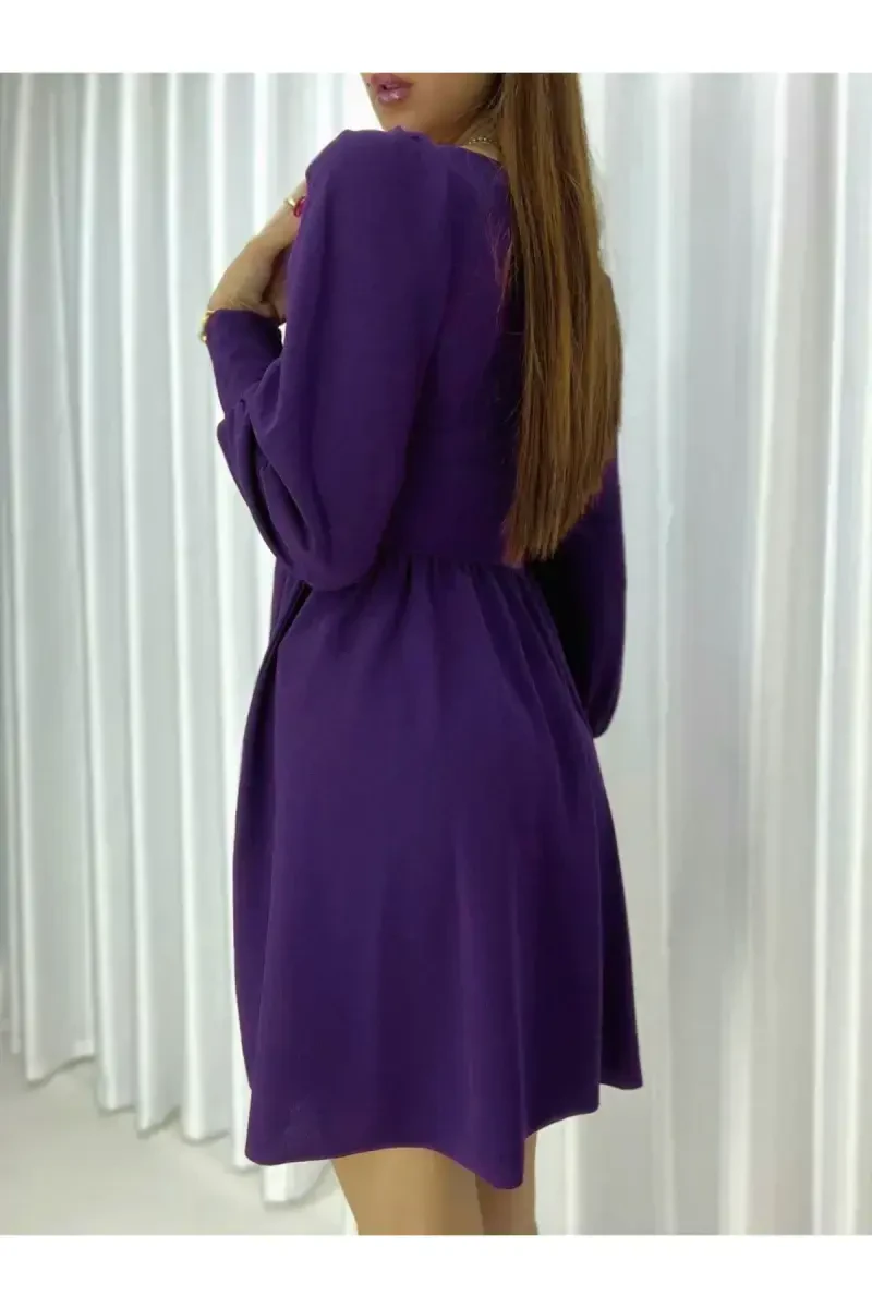 Mor Abiye Elbise: Dekolteli, Çan Etek, Uzun Kollu | Mezuniyet & Özel Davet