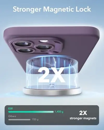 Keep your iPhone 14 Pro safe and stylish with the ESR MagSafe Case designed for your iPhone 14 Pro. This case not only provides a perfect fit for the iPhone 14 Pro, but also features precise cutouts for easy access to all of your phone's functions. You won't compromise on ease of use thanks to the speakers, charging port, and easy-to-press buttons. The smooth and slim silicone structure of the case adds an elegant touch to your phone while providing superior protection against impacts.Its strong magnetic ring integrates seamlessly with your MagSafe charger. Thanks to its 1,400g holding power, your phone's wireless charging is faster and safer. No more dealing with charging problems!This case, which has successfully passed military-grade drop tests, protects your iPhone 14 Pro against all kinds of impacts. The high-quality silicone material absorbs shocks from drops, preventing your phone from getting scratched and damaged. The soft microfiber lining on the inner surface gently wraps around the back surface of your phone and creates an extra layer against scratches.Raised screen edges and the Camera Guard lens frame protect the most sensitive areas of your iPhone 14 Pro. Your screen and camera are protected from scratches when they come into contact with surfaces. This way, you ensure that your phone always looks like new.The silky smooth silicone surface provides a comfortable and secure grip in your hand. Thanks to the non-slip feature of the case, the risk of dropping your phone is reduced. The ESR MagSafe case offers both style and security. ESR provides full customer satisfaction with detailed setup videos, a frequently asked questions section, a comprehensive 12-month protection plan, lifetime support and personalized assistance.