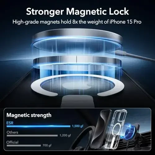 Introducing the ESR Boost Series Case for your iPhone 15 Pro! This case is not just a protector; it's an accessory that simplifies your daily life and complements your style. Equipped with ESR for iPhone 15 Pro Case with Kickstand, Military-Grade Shockproof Protection, Magnetic Fully Adjustable Flickstand Phone Case, Compatible with MagSafe Accessories features, this transparent case keeps your phone safe while providing you with a unique user experience.Thanks to the Fully Adjustable Flickstand feature, you can watch videos hands-free, make your FaceTime calls more comfortable, and find the best angle while surfing the internet. The Flickstand is made of high-quality aluminum alloy and has been laboratory tested to withstand more than 3,000 uses. This ensures long-lasting and reliable use.With its strong magnets, you can safely use your MagSafe accessories and speed up your wireless charging experience. With a holding force of 1,500 g, you will never doubt the power of your magnets. You don't need to remove the case to charge your phone, which provides great convenience.The military-grade protection feature protects your phone against drops, bumps, and scratches. Shock-absorbing Air Guard corners and raised screen edges keep your phone's sensitive points safe. Additionally, the Camera Guard feature protects your camera lenses against scratches.This case is only compatible with iPhone 15 Pro and provides a secure grip while preserving your phone's sleek design. Thanks to its slim design, you can easily carry it in your pocket or bag. Protect your iPhone 15 Pro and reflect your style with the ESR Boost Series Case. With its superior material quality, intelligently designed features, and stylish appearance, this case is an indispensable accessory for iPhone 15 Pro users. It protects your phone against the challenges of daily use while providing you with a practical and convenient experience. This case, produced with ESR quality, promises long-lasting and reliable use. Choose the ESR Boost Series Case to get the best protection and the best experience for your iPhone 15 Pro. Thanks to its transparent design, you can continue to showcase your phone's original color and design while enjoying all the advantages the case offers.
