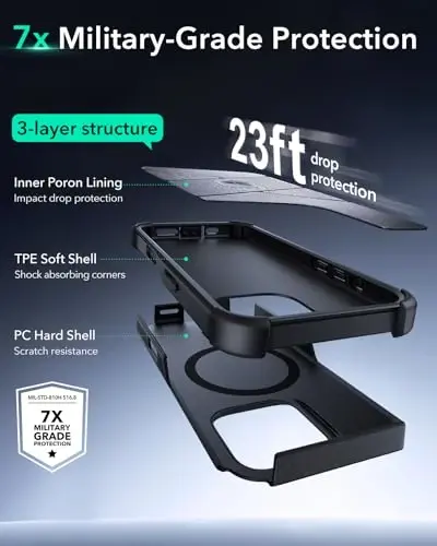 Meet the ESR Cyber Series Case for your iPhone 16 Pro! This case is designed to protect your phone against the challenges of daily life. The ESR for iPhone 16 Pro Case is not just a case, it's a complete security shield for your device. Thanks to military-grade (7X Military-Grade) drop protection, every corner and edge of your iPhone 16 Pro will be safe from bumps and scratches. High-quality silicone material absorbs shocks, protecting your device from internal and external damage. With its strong magnetic lock, you can use your MagSafe accessories faster and easier. With a holding force of 1,500 g, your wireless charging experience becomes more efficient and secure. You no longer have to worry about your phone slipping or falling while charging. The ESR Cyber Series Case not only provides protection, but also offers ease of use. Precise speaker and port cutouts allow you to seamlessly access all of your phone's functions. Easy-to-press buttons make operations such as adjusting the volume or locking the screen effortless. In addition, the special camera control button allows you to take photos and videos more comfortably and stably. This case has a 3-layer structure to provide superior protection against drops. The hard TPE and PC outer shell resists bumps and scratches, while the soft inner shell absorbs shocks for extra cushioning. In this way, your iPhone 16 Pro can be protected even against drops of up to 23 feet. With the ESR Cyber Series Case, you can safely use your phone and enjoy it without worrying about the risks of daily life.