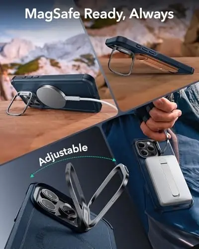 The ESR for iPhone 16 Pro Case with Stash Stand is a uniquely designed case that protects your phone while offering exceptional features. This case perfectly fits the iPhone 16 Pro model, ensuring easy access to all your phone's functions. You won't experience any loss in sound quality thanks to the precise speaker and port cutouts. The easily pressed buttons enhance your comfort when using your phone.One of the most striking features of the case is its full compatibility with the iPhone's camera control. This allows you to make quick and precise adjustments while taking photos or recording videos. You can easily change any setting with a single click, press, or swipe, providing a seamless experience.The versatile camera stand protects your camera and allows you to use your phone at different angles. Tested for over 3,000 uses, this stand can stand stably at vertical and horizontal angles between 0-85°. This feature allows you to comfortably use your phone while watching videos, making video calls, or simply checking your notifications.The ESR case has a strong magnetic lock. With a holding force of 1,500 g, this magnetic ring makes wireless charging faster and easier. It also allows you to securely attach any MagSafe accessory to your phone. This way, you can easily use chargers, wallets, or other MagSafe-compatible accessories.Protecting your phone from drops is one of the most important priorities of this case. Thanks to its three-layer structure, it provides superior protection against impacts and scratches. The hard TPE and PC outer surface resist impacts, while the soft inner surface absorbs shocks and protects your phone. This provides extra cushioning against drops from heights up to 7 meters (23 ft). Your phone is safe with the ESR case.At ESR, we prioritize customer satisfaction. We assist you at every step with detailed installation videos and frequently asked questions (FAQ). We are there for you if you experience any issues with our comprehensive 12-month protection plan and lifetime technical support. You can always reach out to us for personalized assistance. ESR is not just a case, but also a reliable companion.