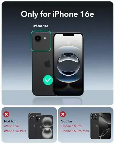 Safely protect your iPhone and take full advantage of MagSafe technology with the new ESR iPhone 16e Case. This case is compatible only with the iPhone 16e model and is designed to provide the highest level of protection without restricting all the features of your phone. With precise speaker and port cutouts and easily accessible buttons, you won't experience any difficulty using your phone.Thanks to its powerful magnets, this case is perfectly compatible with your MagSafe compatible accessories. With a holding force of 1,500 g, you can place your phone on your wireless charger in seconds and ensure a secure connection. The magnets prevent your phone from slipping or falling while charging, providing you with a flawless experience.Equipped with military-grade drop protection, this case offers superior resistance to impacts and drops. Specially designed Air Guard corners absorb the shock during a fall, preventing damage to your phone. Made of high-quality materials, the case is also resistant to scratches and abrasions that may occur in daily use.Thanks to its raised edges, your screen and camera lenses are protected against scratches. When you place your phone on a flat surface, the screen and lenses do not touch the surface, which significantly reduces the risk of scratching. This feature helps your phone last longer and always look like new.Thanks to its transparent and stylish design, you can showcase the original beauty of your iPhone 16e. The crystal-clear acrylic back surface highlights your phone's color and design, while also making the case scratch-resistant. The black frame of the case gives your phone a modern and elegant look.At ESR, we always prioritize customer satisfaction. For this reason, we offer comprehensive support with our product, including detailed installation videos and frequently asked questions (FAQs). Additionally, we are always ready to assist you with a 12-month warranty and lifetime technical support. If you have any questions or concerns, please do not hesitate to contact us for personalized assistance.
