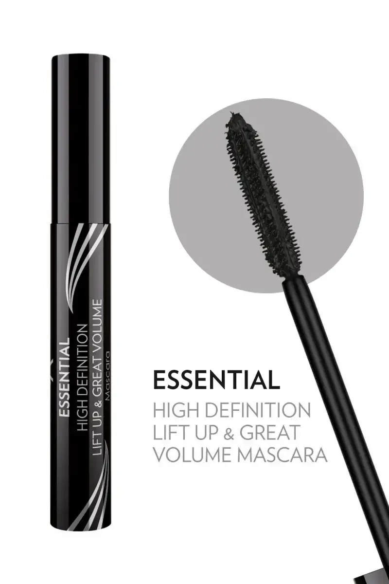 Agar siz ko'zlaringiz jozibali ta'sir yaratishini istasangiz, Essential High Definition & Lift Up & Great Volume Maskarani sinab ko'ring!