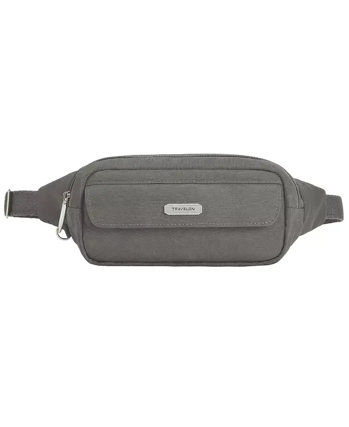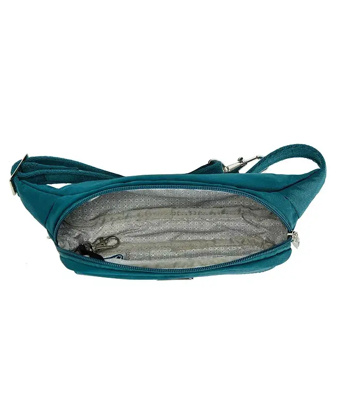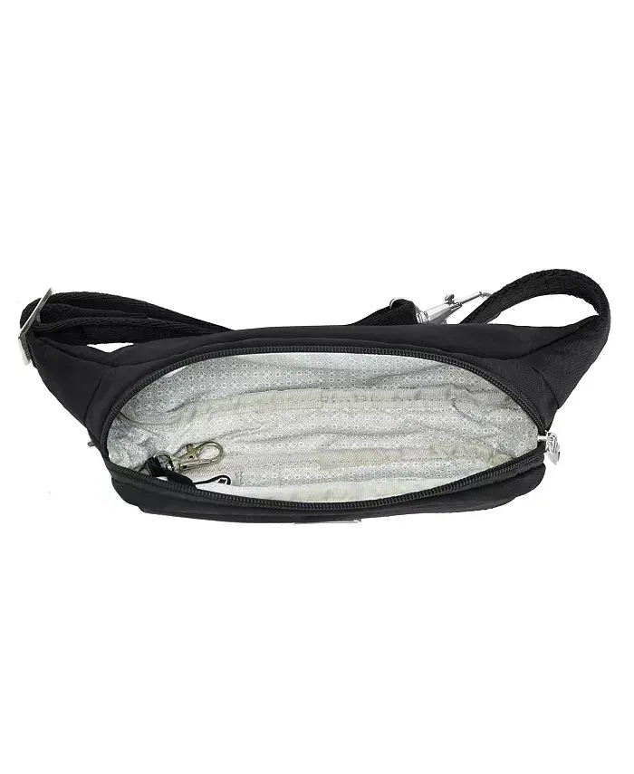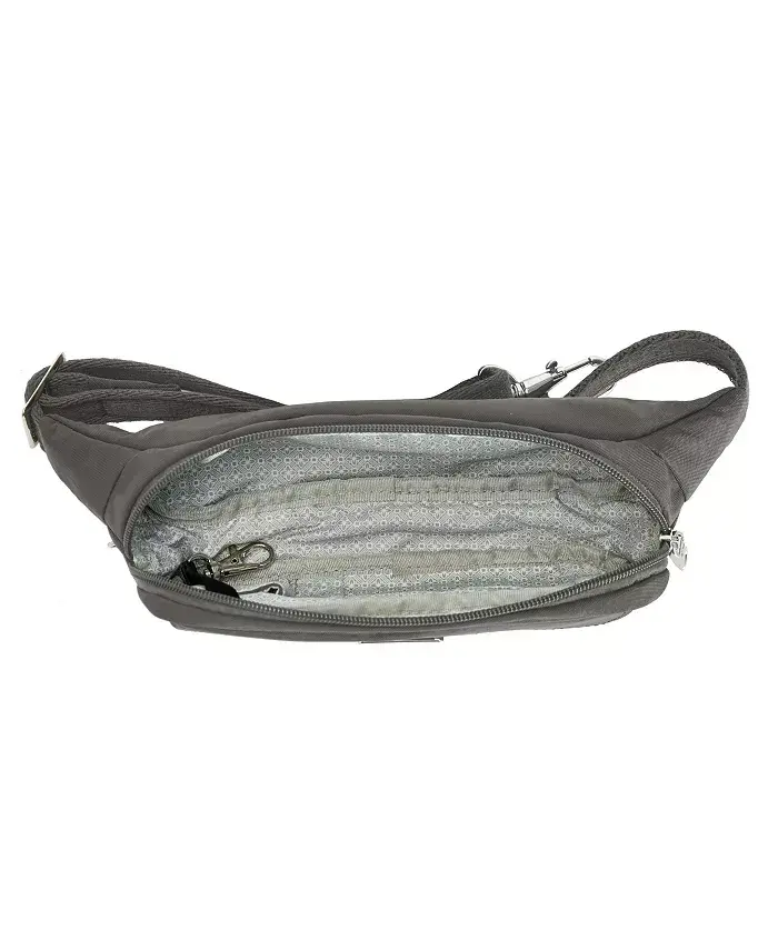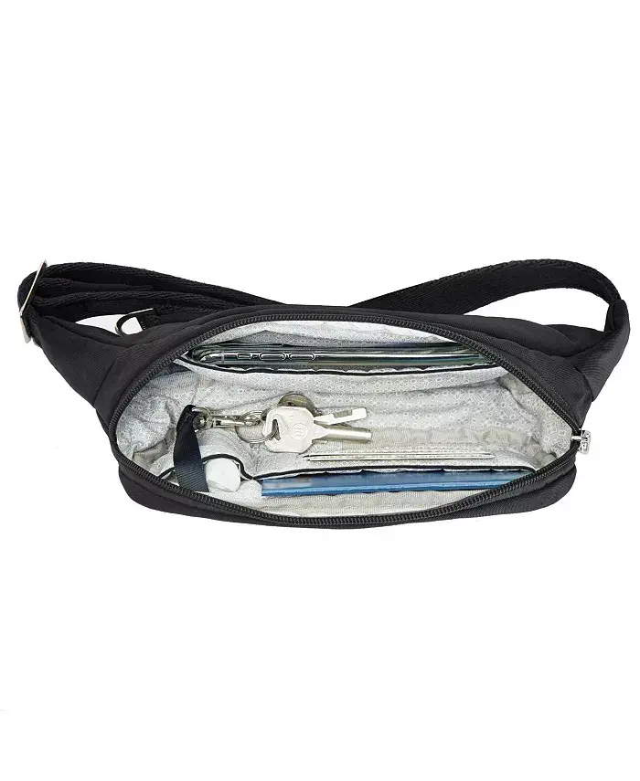 Meet the Essentials Anti-Theft Slim Belt Bag designed for those who love to travel! Now you can enjoy traveling freely and lightly, getting rid of bulky bags. The Essentials Slim Belt Bag is the ideal solution to accompany you on your travels, combining security and practicality. With this bag, you can focus on exploring the world instead of looking around anxiously. The Anti-Theft Essentials Slim Belt Bag offers you peace and security on your travels. Thanks to the advanced 5-point anti-theft system, your belongings are always safe. Cut-resistant special mesh panels strengthen the body and straps of the bag, protecting it against external interference. Lockable compartments secure your valuables, while interior pockets equipped with RFID (Radio Frequency Identification) blocking technology protect your credit cards and passport's personal information from theft. The Essentials Slim Belt Bag is not only safe but also extremely practical. It has a hidden zippered pocket under the front flap, so you can keep your passport, cash or other important documents in an easily accessible place. The organizer panel inside the main compartment, with slip pockets and key clip, allows you to organize your belongings neatly. The soft and adjustable waist strap fits most waist sizes from 31 inches to 38 inches and offers comfortable use all day long. Whether you are strolling around the city, hiking in nature, or in a crowded market, the Essentials Slim Belt Bag is the perfect option to accompany you. It frees your hands, takes the weight off you, and invites you to just enjoy the moment. Take your travel experience to the next level with this stylish and functional belt bag. The Essentials Anti-Theft Slim Belt Bag is an indispensable accessory for travelers who are both stylish and security conscious.