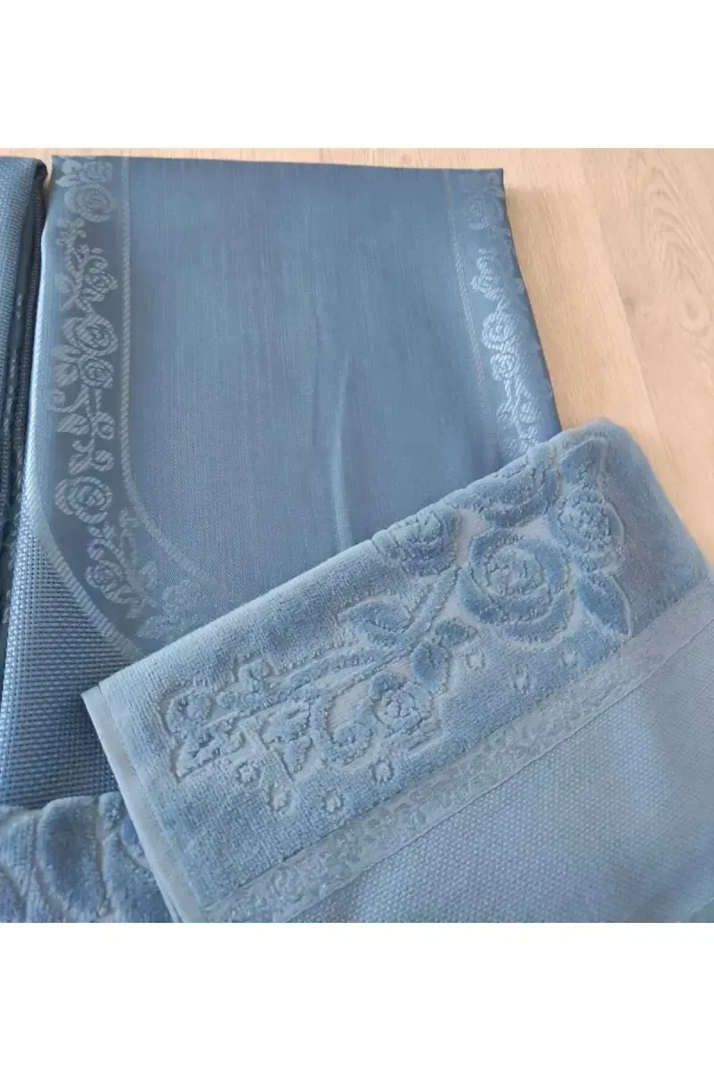 Набор для вышивания намазлыка Etamin, изготовленный вручную с любовью и заботой, станет вашим спутником при совершении религиозных обязанностей и привнесет в ваш дом изящество традиционных ремесел. Этот специальный набор состоит из намазлыка, мешочка и двух полотенец. Этот набор, выполненный в успокаивающих синих тонах, является идеальной основой для тех, кто хочет вышивать на ткани этамин. Вы можете персонализировать свой намазлык, мешочек и полотенца мотивами, соответствующими вашему вкусу и убеждениям, и создать уникальное произведение. Этамин – это тип ткани с регулярным переплетением, который часто используется, особенно для вышивки крестиком. Равномерно расположенные отверстия этой ткани облегчают вышивку и обеспечивают аккуратное появление мотивов. Набор для вышивания намазлыка Etamin изготовлен из качественной ткани этамин и обеспечивает длительное использование. Прочность ткани гарантирует, что ваша вышивка останется такой же, как в первый день, на долгие годы. Намазлык специально разработан для благоговейного совершения намаза. Его размеры достаточно широки, чтобы вы могли комфортно совершать земной поклон, а его легкая конструкция позволяет легко его переносить. Мешочек идеально подходит для хранения вашего намазлыка и других личных вещей. Мешочек, который благодаря своему стильному дизайну станет незаменимой частью сундуков с приданым, также является значимым подарком, который вы можете подарить своим близким. Полотенца имеют мягкую и впитывающую текстуру для вытирания рук и лица после омовения. Весь набор выполнен в гармоничных цветах и узорах, дополняющих друг друга. Набор для вышивания намазлыка Etamin — это больше, чем просто религиозный объект, это произведение искусства. Вы можете персонализировать этот набор, используя свои творческие способности, и подарить своим близким незабываемый подарок. Вы можете выразить свои молитвы, желания и любовь мотивами, которые вы вышиваете на нем. Этот набор также является важным шагом в защите наших традиционных ремесел и сохранении этой культуры. Не упустите этот специальный набор, который привнесет в ваш дом духовную атмосферу!