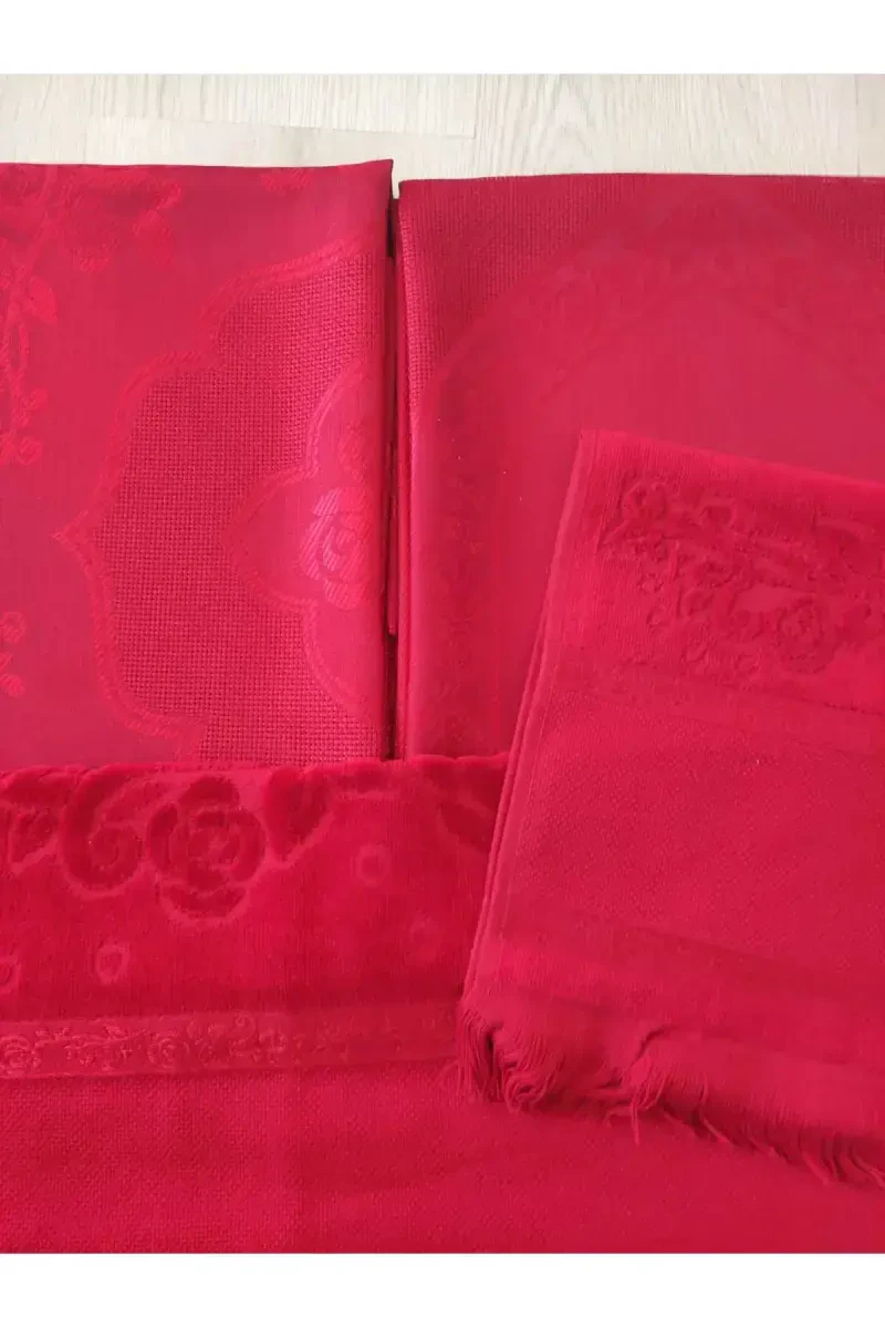 Etamin Seccade Takımı Qizil: Bohcha, Seccade, 2 Sochiq | Ishlamalik Paxta Seti