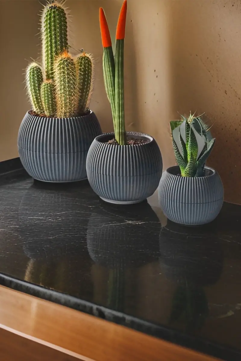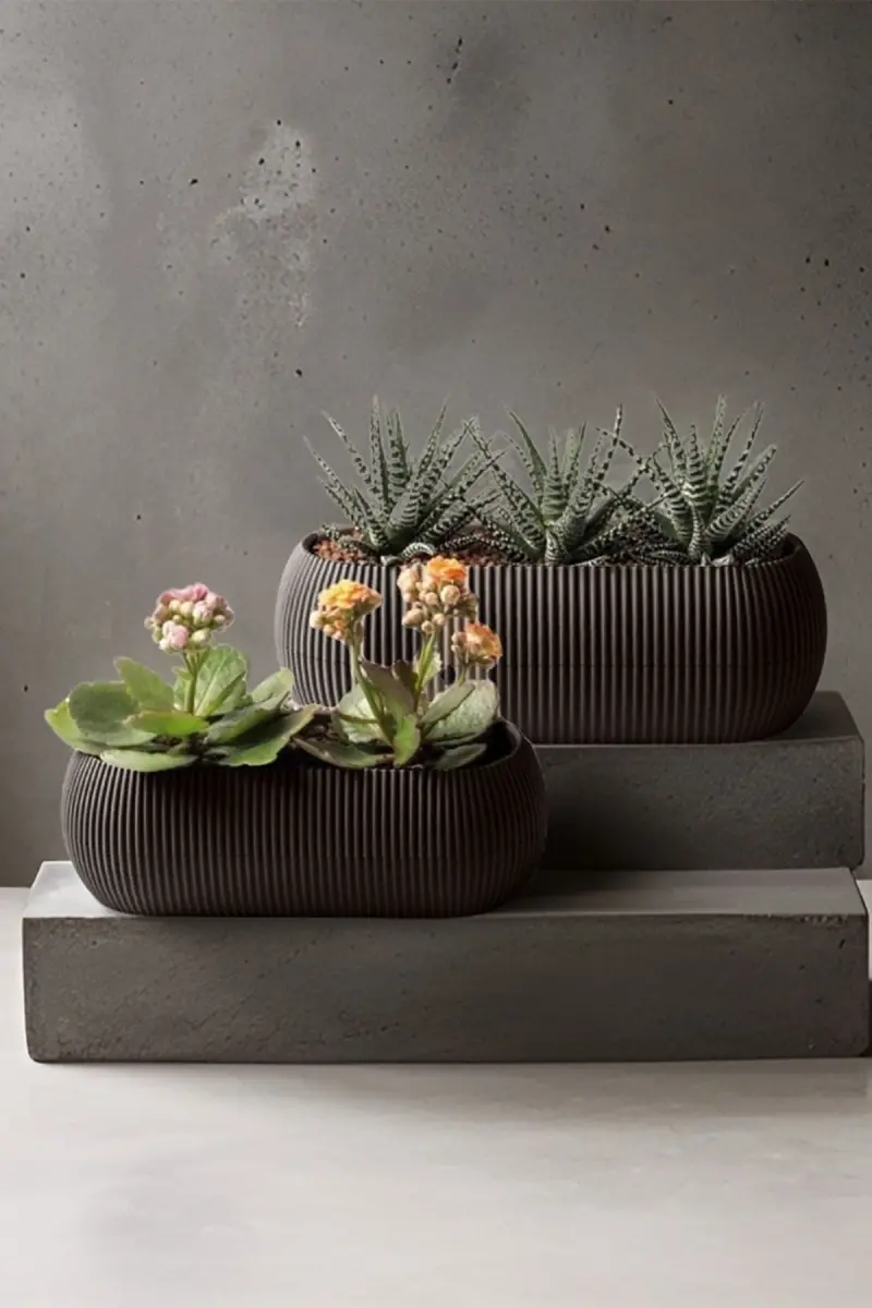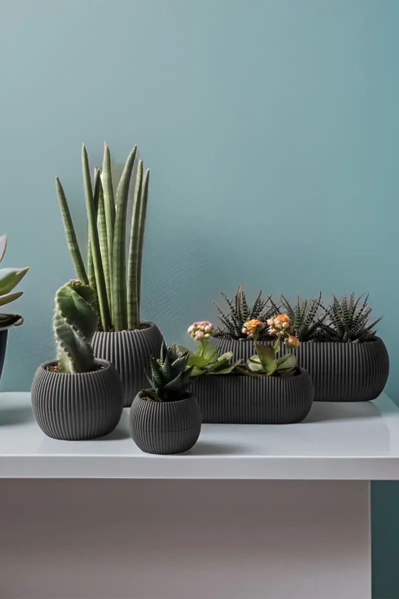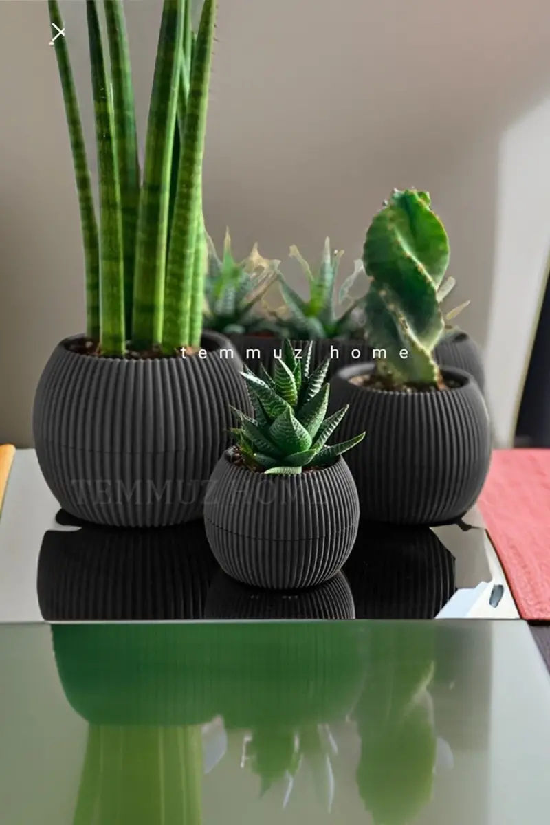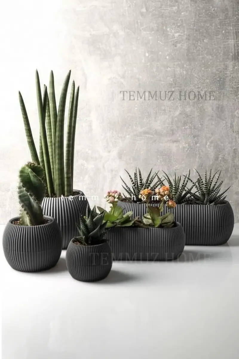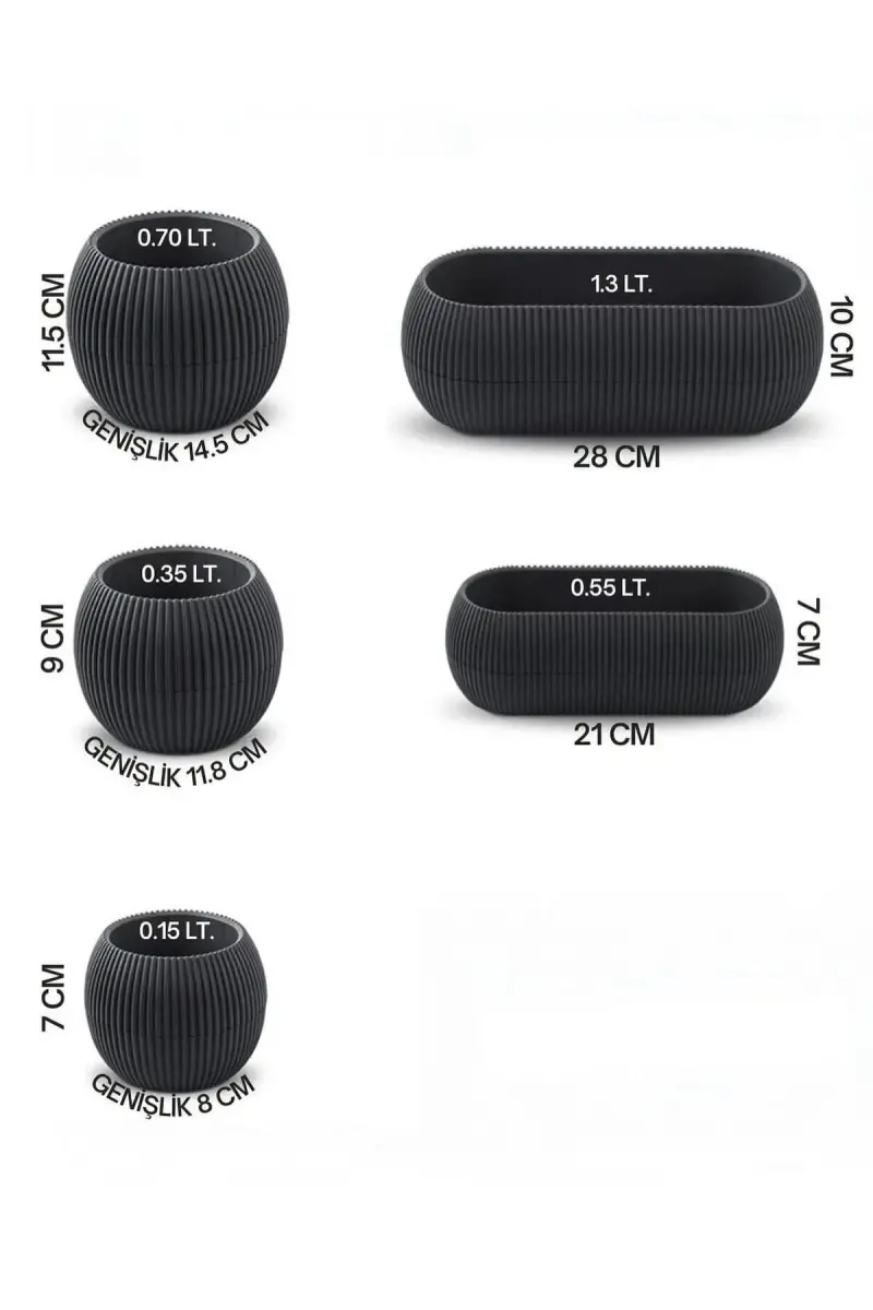 Ev Dekorasyonu Karasu Dekoratif Ve Modern Mercan Saksı Seti 5 Parça-ANTRASİT