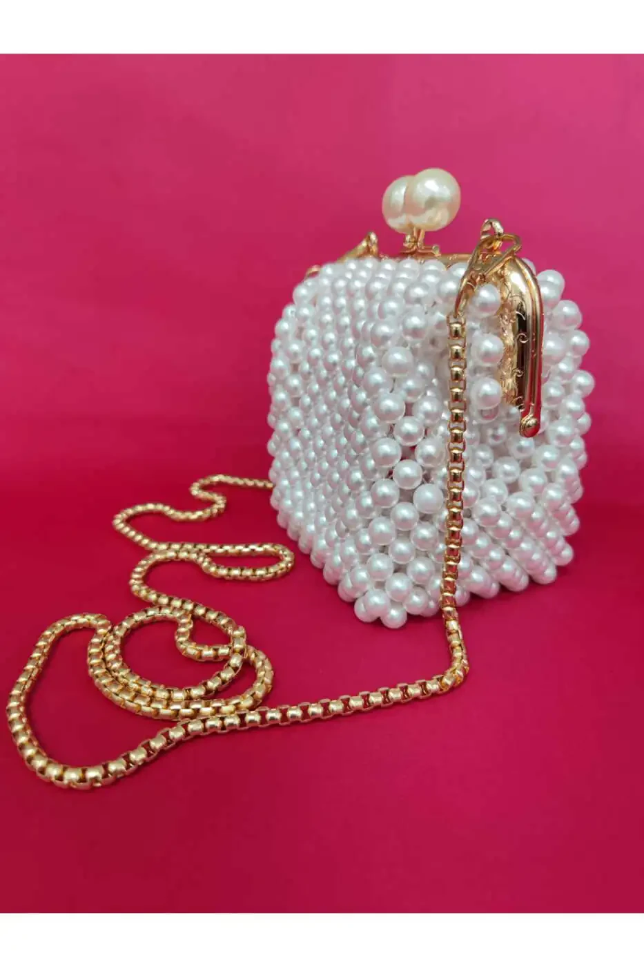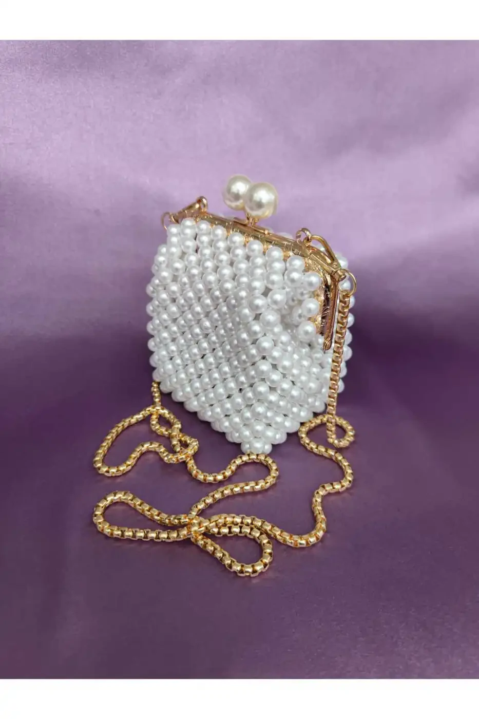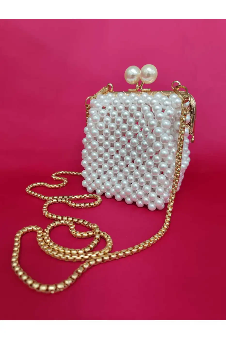 Do you need a stylish and eye-catching accessory to complete your look for special occasions? This bag, with its delicate craftsmanship and eye-catching pearl details, is perfect for you, perfectly complementing your evening, bridal or night dresses!