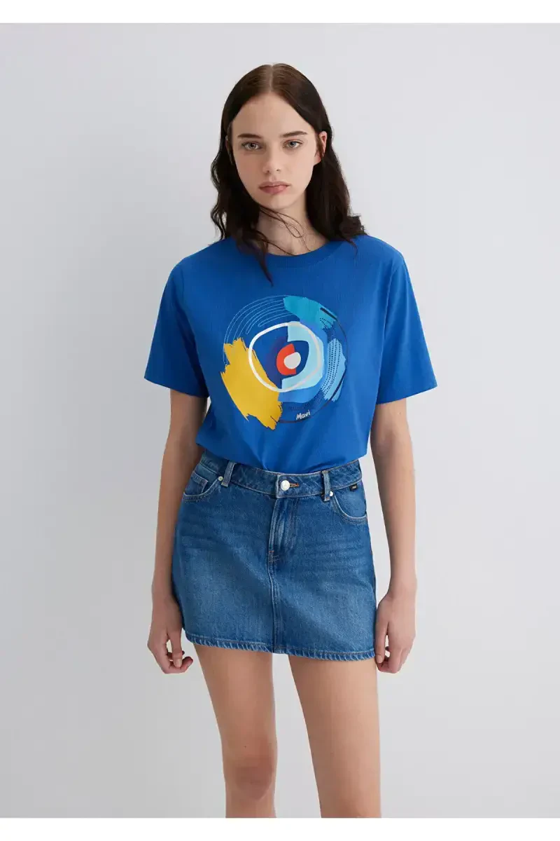 The Evil Eye Print Navy Blue T-shirt Crop from Mavi's unique Maviterranean Collection brings the energy of summer and the enchanting atmosphere of the Mediterranean to your wardrobe. This special design reflects Mavi's unique style while combining comfort and elegance. Celebrating the arrival of summer, this collection invites you to write your own summer story. This t-shirt, which you can use in your daily combinations or on special occasions, will be an indispensable part of your wardrobe. The Evil Eye print creates both a stylish detail and presents traditional motifs with a modern interpretation. The navy blue color makes the t-shirt easy to combine, while the crop/short cut provides a trendy look. Thanks to its high-quality cotton fabric, it offers comfortable use all day long, allowing your skin to breathe and preventing sweating. The Maviterranean Collection stands out with its designs that reflect the Mediterranean spirit and the energy of summer. The Evil Eye Print Navy Blue T-shirt Crop is one of the most striking pieces of this collection. This t-shirt, which is an ideal option for women who want to be both stylish and comfortable, will help you reflect your style and create original combinations. Designed with Mavi quality and elegance, this t-shirt offers long-lasting use and always remains trendy. This special design t-shirt is not just a piece of clothing, but also reflects a lifestyle and mood. While carrying the warmth and energy of the Mediterranean on you, you will always feel good. Prepared with Mavi's carefully selected fabrics and details, this t-shirt is a candidate to be one of the most loved pieces of your wardrobe. If you don't want to compromise on your style while enjoying the summer, the Evil Eye Print Navy Blue T-shirt Crop is for you. This t-shirt, which attracts attention with its stance and cut on the mannequin, is designed to fit different body types. Whether you combine it with shorts and sneakers for a sporty look, or complete it with a skirt and sandals for a more stylish style, this t-shirt will help you reflect your style in any case. This t-shirt, which you will have with Mavi's quality and assurance, will keep its place in your wardrobe for many years and will always remain as new as the first day.