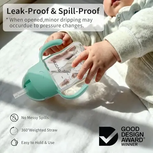 Evorie Tritan Weighted Straw Sippy Cup - это инновационный и безопасный продукт, специально разработанный для того, чтобы помочь младенцам и маленьким детям развить навыки самостоятельного питья. Эта бутылочка-поильник объемом 7 унций (около 207 мл) идеально подходит для младенцев старше 6 месяцев и помогает им научиться пить из трубочки, сводя к минимуму проливания и протечки. Мятный цвет также придает ей привлекательный дизайн. Надпись "Поврежденная этикетка: не подлежит перепродаже" на изделии указывает на то, что изделие прошло строгий контроль качества и находится в отличном состоянии для использования, несмотря на любые дефекты внешней упаковки. Это важная отметка, гарантирующая надежность и качество продукта. Evorie Tritan Suluk имеет конструкцию мягкой силиконовой утяжеленной трубочки 360°, которая обеспечивает возможность питья под разными углами. Эта функция позволяет вашему ребенку комфортно пить в любом положении. Это идеальное решение для младенцев, начинающих пользоваться трубочкой. Кроме того, благодаря откидной крышке и крестообразному клапану протечки и пролития значительно уменьшаются. Однако следует помнить, что при надавливании на трубочку в открытом состоянии возможны капли. Безопасность - главный приоритет для Evorie. Suluk имеет специальную систему трубочек с защитой от удушья и обратного потока. Эта система сводит к минимуму чрезмерное поступление воздуха, предотвращая образование колик и предотвращая обратный поток остатков пищи. Это делает его безопасным и разумным выбором для младенцев в возрасте 6-12 месяцев. Evorie Tritan Suluk изготовлен из прочных и безопасных материалов. Tritan - это материал, прозрачный как стекло, но прочный как нержавеющая сталь. Это делает suluk долговечным и нелегким для поломки. Кроме того, он не содержит BPA, BPS и фталатов и соответствует европейским стандартам пищевого класса и сертификату безопасности EN14350. Это означает, что он абсолютно безопасен для здоровья вашего ребенка. Простота очистки и использования также являются важными особенностями Evorie Tritan Suluk. Благодаря своей структуре, устойчивой к пятнам, он легко моется и может мыться в посудомоечной машине. Кроме того, его можно использовать в стерилизаторе. Благодаря утяжеленной трубочке и удобной, надежной ручке, маленьким ручкам легко переходить на питье из трубочки. Эти особенности делают повседневное использование чрезвычайно легким как для вашего ребенка, так и для вас. Evorie Tritan Suluk также выделяется своим дизайном, получив австралийскую награду Good Design Award 2020. Эта награда показывает, что продукт не только функционален, но и эстетически успешен. Этот герметичный и не проливающийся suluk, продаваемый под лозунгом "Лучший друг матерей", поставляется в подарочной коробке. Это делает его отличным вариантом подарка для детских вечеринок и дней рождений. С помощью Evorie Tritan Weighted Straw Sippy Cup вы можете развивать привычки питья вашего ребенка безопасно, легко и приятно. Этот продукт и защищает здоровье вашего ребенка, и предлагает вам практичное использование.